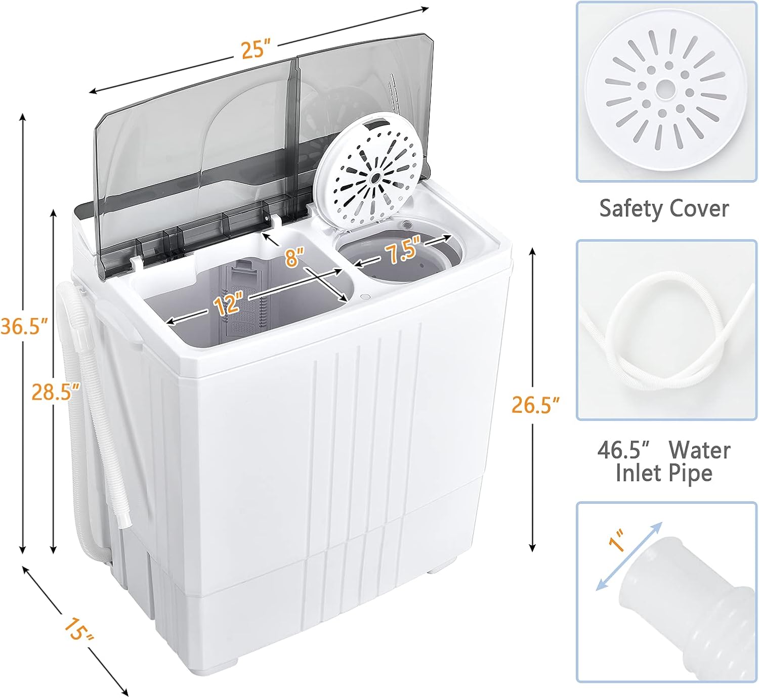 [Compact Size & Wide Application]: With measurement of 25” x 15” x 28.5”, the space-saving washer may be positioned in restricted corners simply, so it is extremely appropriate for dormitories, small residences, RVs or wherever with restricted rooms. In the meantime, its compact measurement additionally ensures its low power consumption which helps you save a lot power.