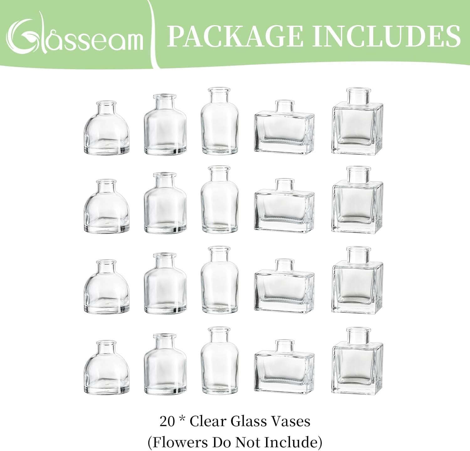 Versatile Bulk Vases Set: 20 small glass vase in bulk at a resonable worth; A enjoyable and reasonably priced manner for an all 12 months decor accent; They’re greater than a recycled small glass vases, but in addition a easy reed diffuser bottle, a artistic plant propagation vase for crops, and in addition giftable as party parting items, child bathe favors, and marriage ceremony souvenirs