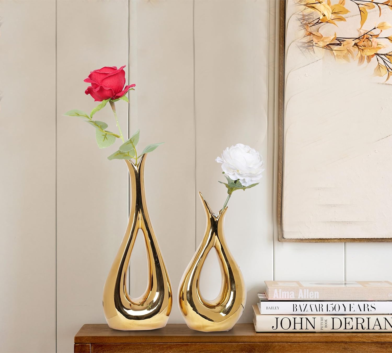 Elevate your private home decor with this beautiful Ceramic Vase in a shocking Gold end. Crafted with meticulous consideration to element, it combines timeless class with fashionable sophistication.