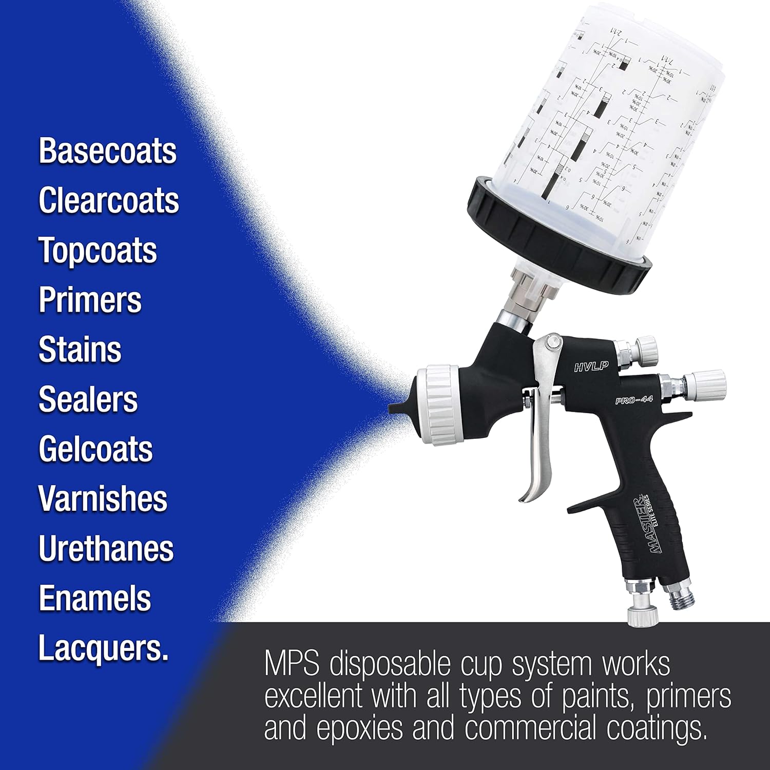 Grasp Spray Weapons, MPS disposable cup system works glorious with all varieties of paints, primers, epoxies, and industrial coatings. Use the cup system with automotive paint basecoats, clearcoats, topcoats and primers, in addition to with stains, sealers, gel coats, varnishes, urethanes, enamels, and lacquers.