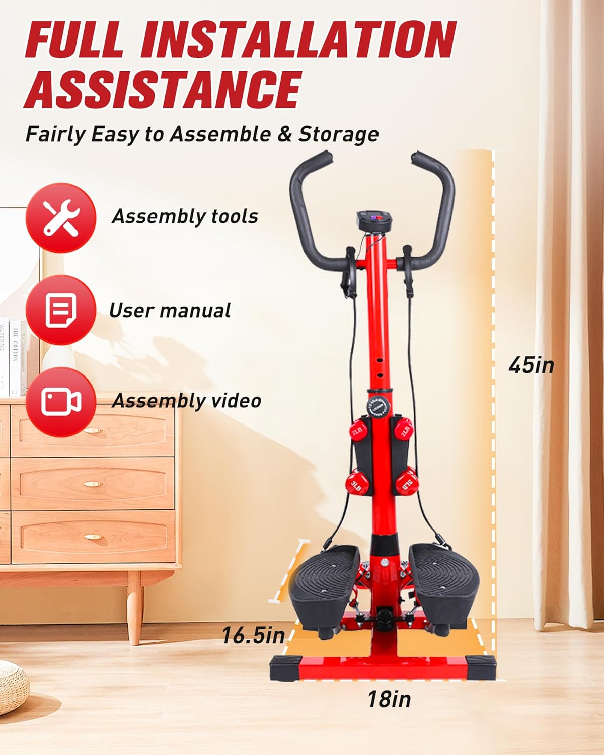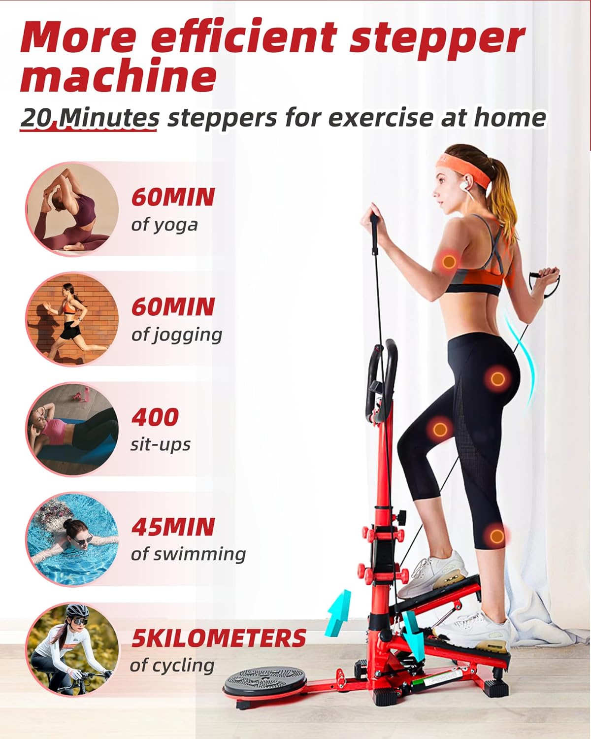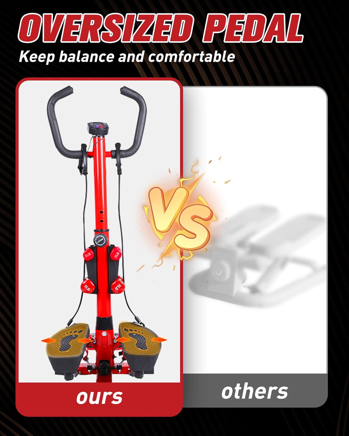 ✅【Absolute Stability and 300LBS Load Capability】The load-bearing construction of the stair stepper with silicone anti-slip base unit is product of high-quality 2MM thick business metal, guaranteeing absolute stability and 300LBS load capability. The V-twist stepper with handlebars permits you to obtain a full-body exercise by coaching your core, arms, shoulders, biceps.