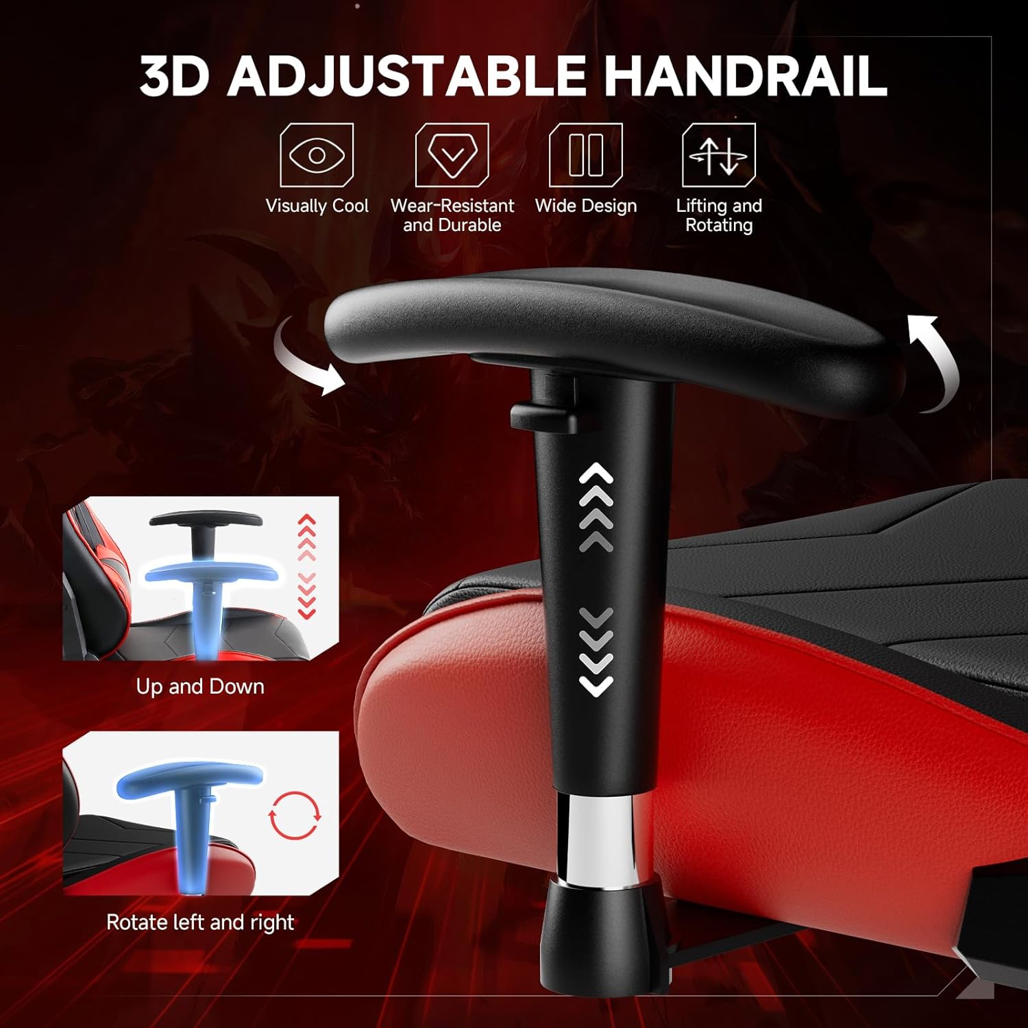 [3D Adjustable Armrests]: Designed for flexibility in gaming, the 3D adjustable armrests on this chair are excellent for any gaming setup. Each the peak and angle of the armrests could be exactly adjusted in line with your physique form and preferences, providing customized help in your wrists and shoulders. Even throughout lengthy, intense gaming periods, the armrests assist relieve strain in your arms and shoulders, permitting for smoother gameplay.