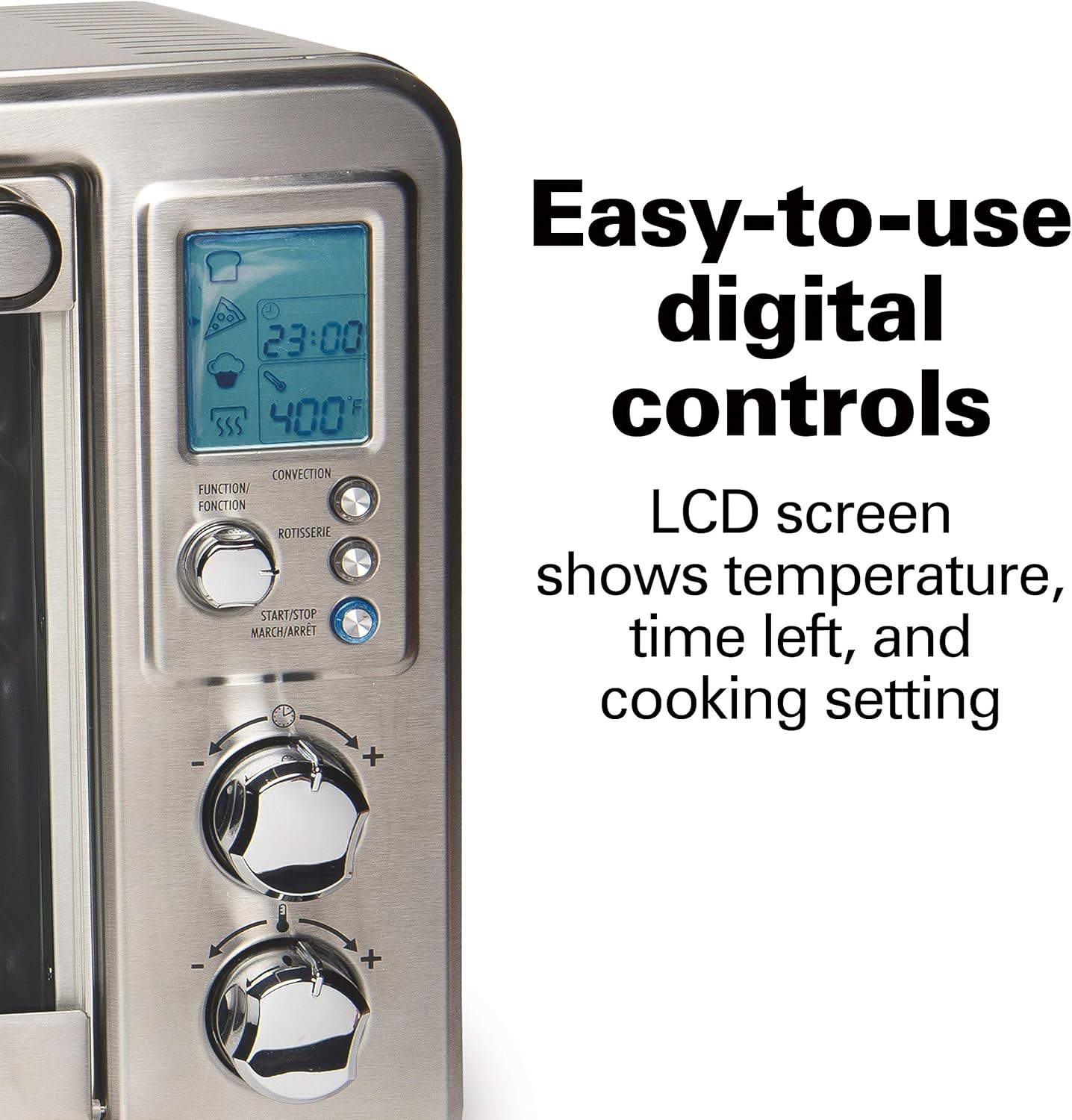 The Hamilton Seaside Digital & Convection Toaster Oven with Rotisserie offers you all of the countertop cooking comfort you’re keen on in a toaster oven and makes it much more versatile by including rotisserie and convection cooking Along with conventional toasting baking and broiling convection cooking enables you to prepare dinner nice tasting evenly cooked meals within the oven Excellent for a household this multi-functional oven can rotisserie an entire rooster prepare dinner a 12″ pizza toast 6 slices of bread and rather more The intuitive controls embrace 6 settings to cowl each cooking want and a digital LED panel to maintain you knowledgeable concerning the preheating standing remaining cooking time and present temperature The patented contoured knob design makes greedy and turning the dials straightforward for anybody The inside of this oven options 3 rack positions and a slide-out crumb tray for straightforward cleanup A bake pan broil rack and rotisserie equipment are additionally included