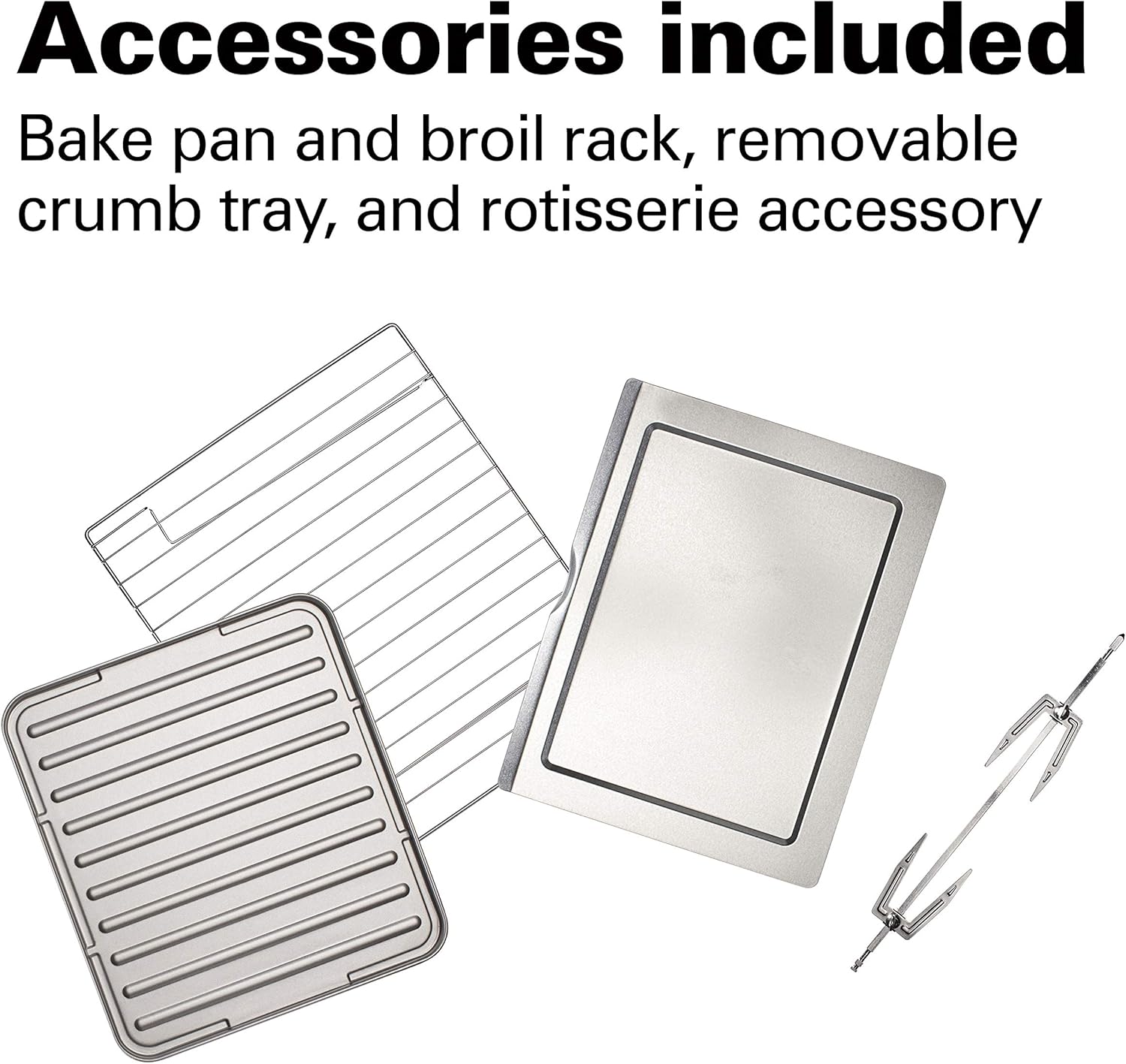 INCLUDES BAKE PAN BROIL RACK ROTISSERIE ACCESSORIES AND REMOVABLE CRUMB TRAY This Hamilton Seaside toaster oven/convection oven combo comes with every thing it is advisable to begin cooking proper out of the field