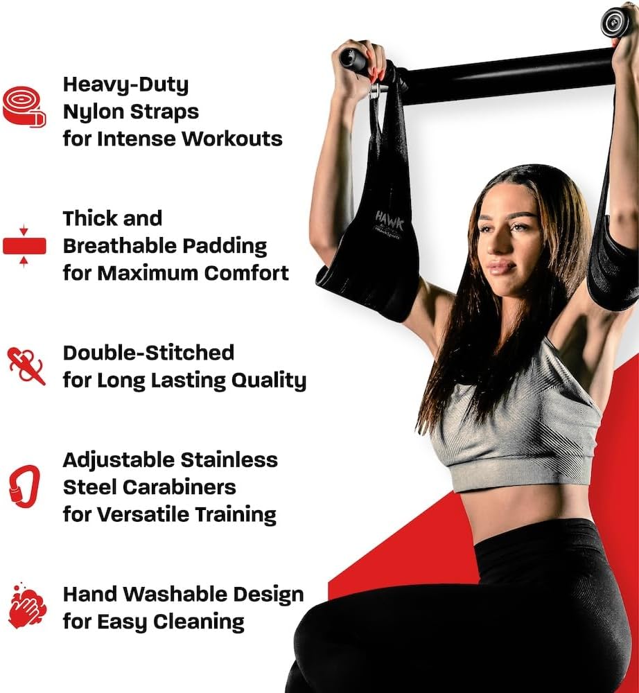 Unleash Your Potential: Overcome grip challenges and elevate your Ab exercise with Hawk Sports activities Ab Straps. These improve your health routine with out straining your grip