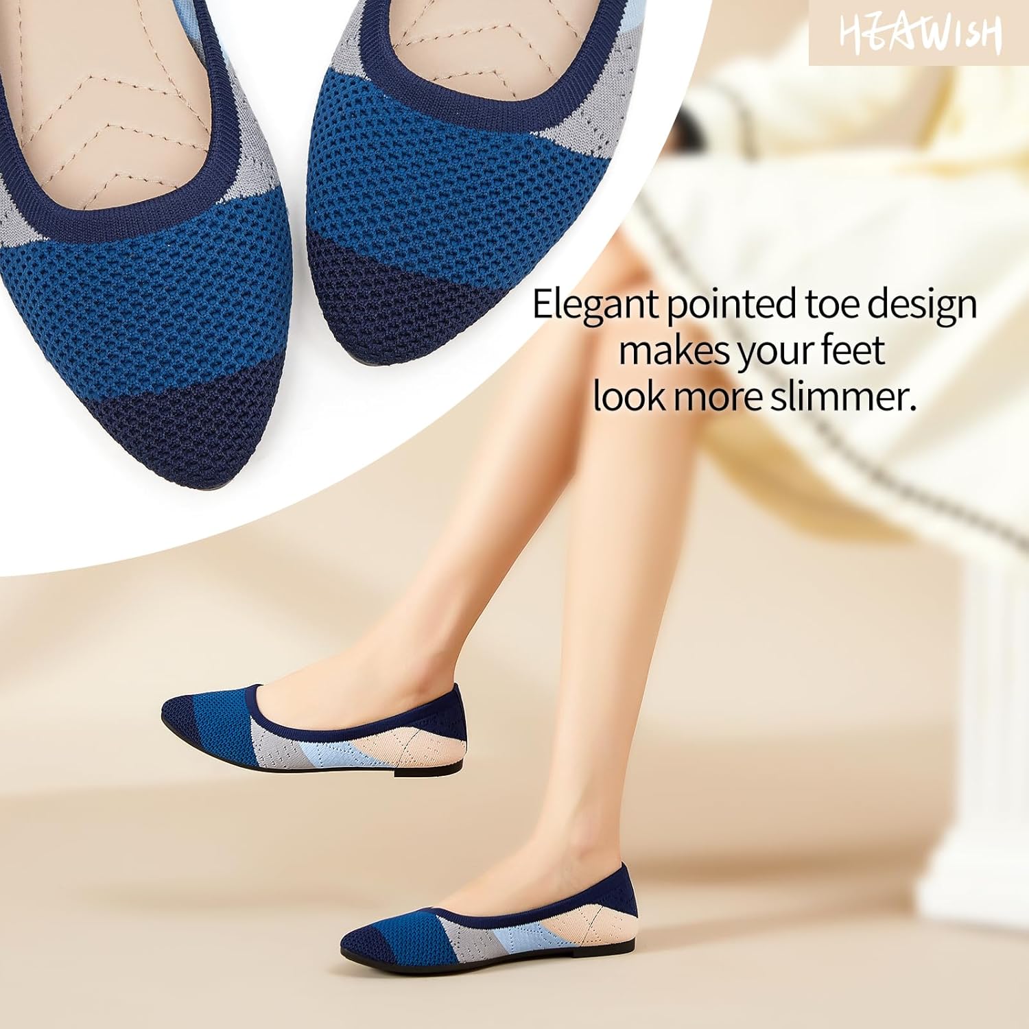 HEAWISH Ladies’s Ballet Flat Flats Footwear Snug Mesh Pointed Toe S…