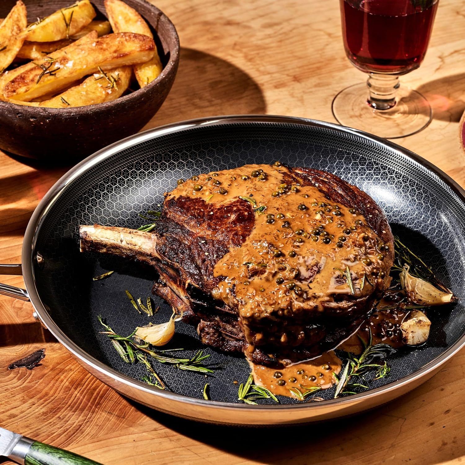 HexClad’s Hybrid expertise encompasses a laser-etched hexagonal nonstick floor that mixes each stainless-steel and our TerraBond ceramic coating for the last word sear and straightforward cleansing.