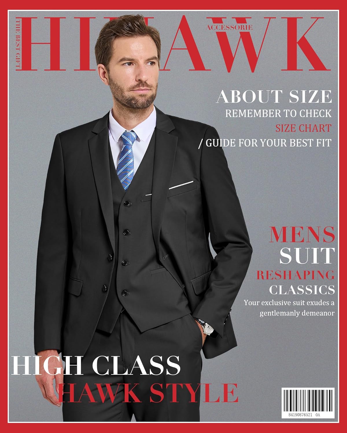 Hihawk Males’s 3 Piece Go well with with Tie, 2 Button Slim Match Stable Blazer Jac…