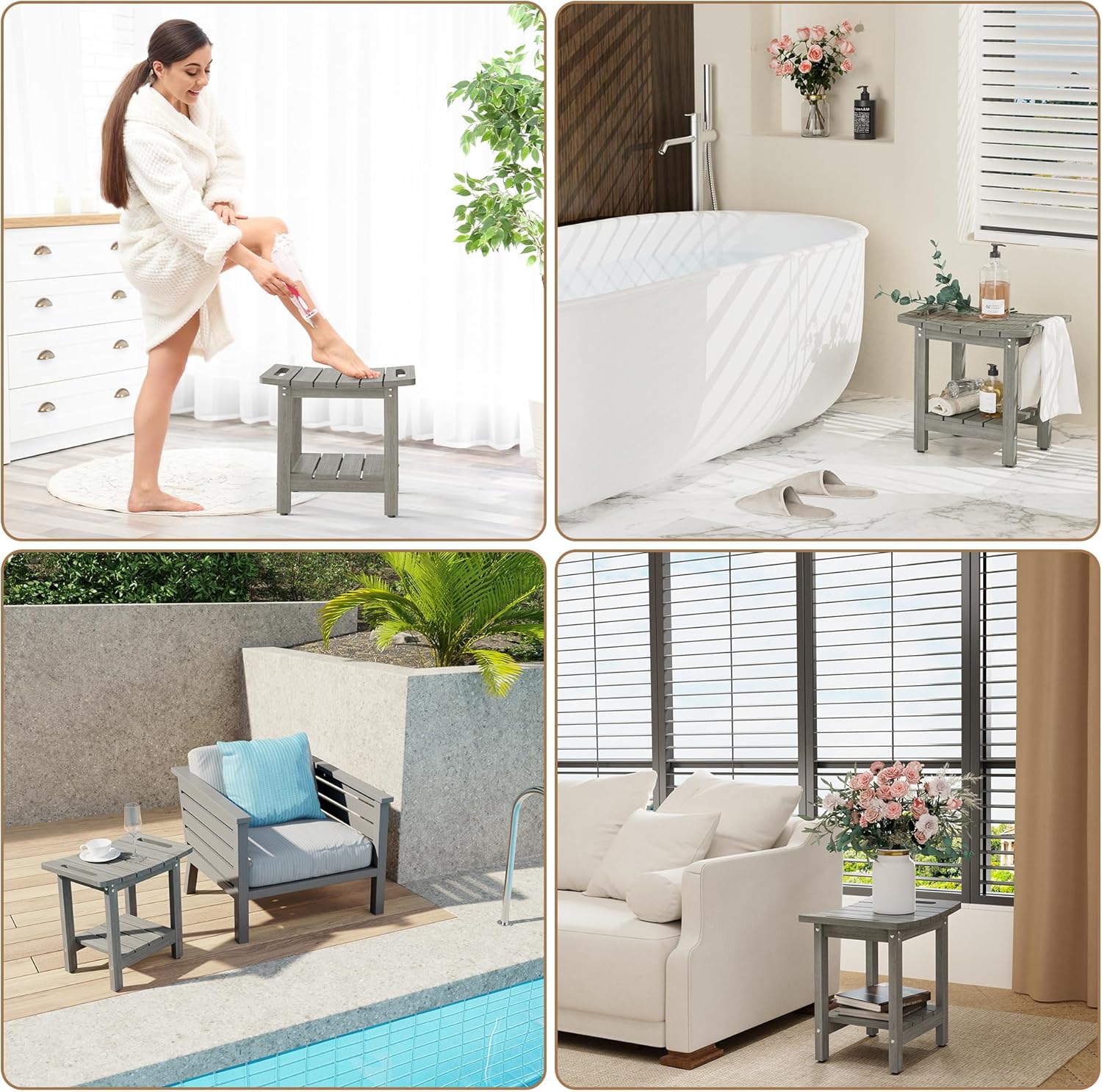 【Multipurpose Bathe Seat & Chair】- Our bathe bench will be utilized to a wide range of events. Good slot in Bathe Stall / Main Tub / Stand Up Bathe / Stroll in Bathe. Nice nook desk beside the Tub. Good storage unit in Kitchen / Residing Room / Bed room / Yoga Room / Storage. Engaging outside desk for Porch / Bench and Plant stand on Balcony.