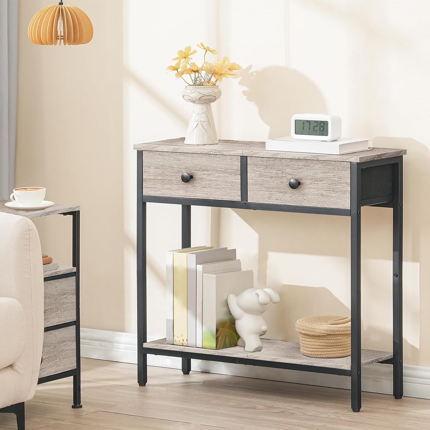 Fashionable Fashion: Black metallic body mixed with greige wood panels can go effectively with many various colours. The slim entryway desk with 2 drawers will let your examine or bed room extra charming