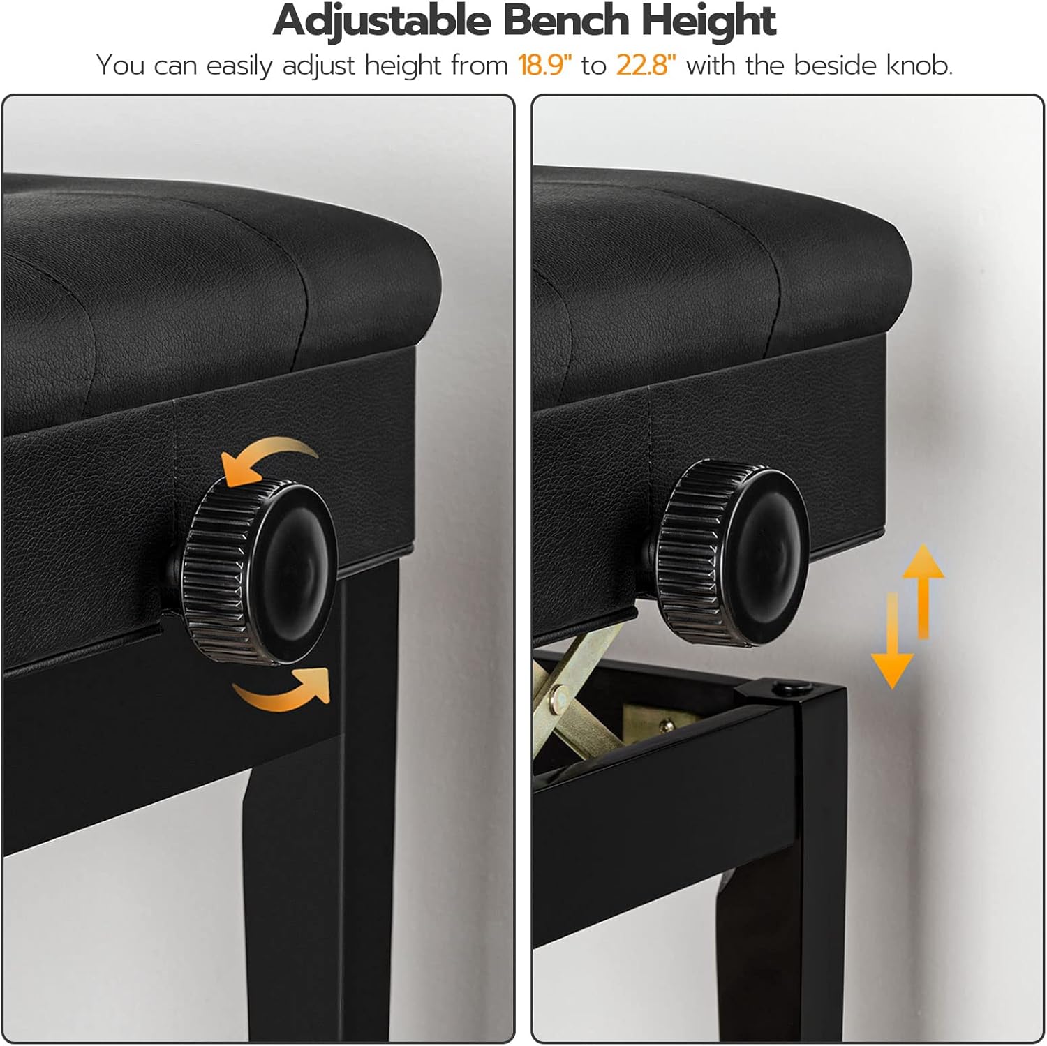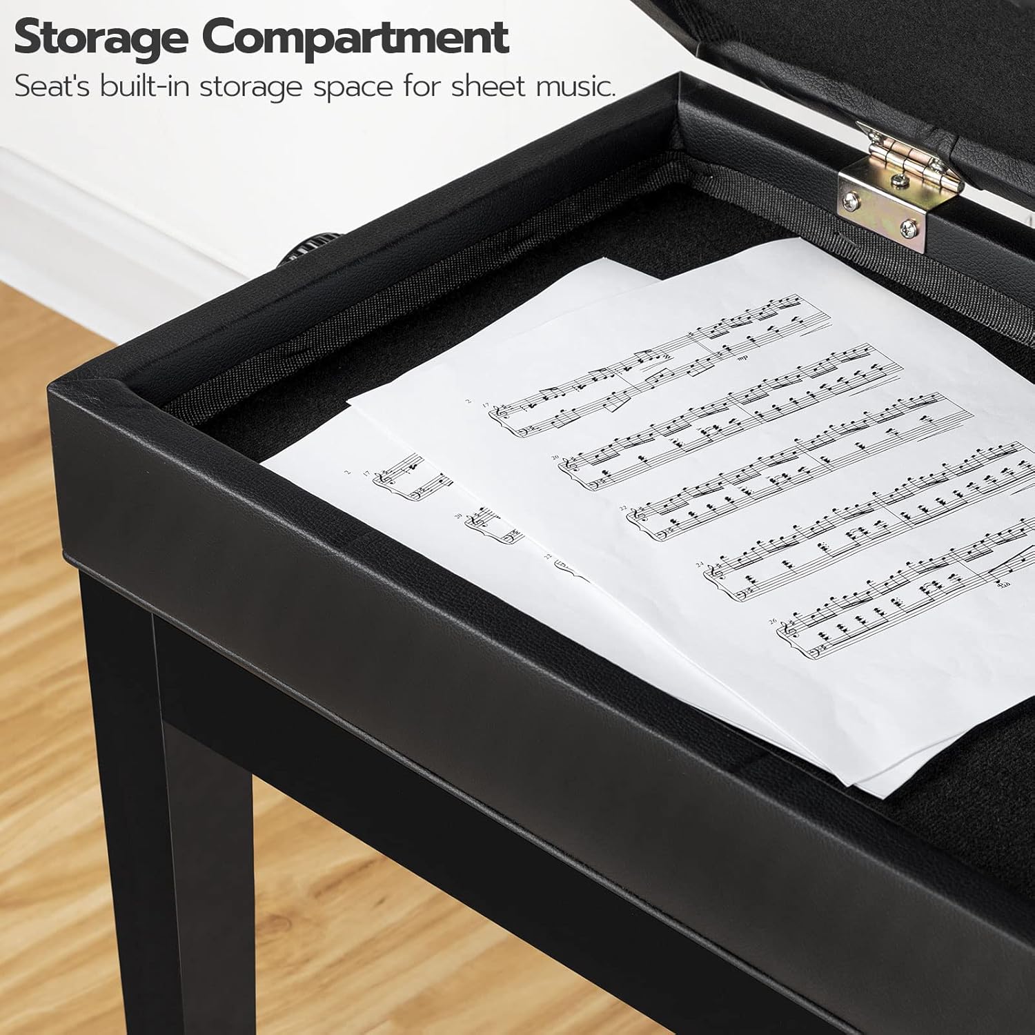 Hidden Storage: A storage compartment is included beneath the seat in your sheet music, tuners and different equipment. The lid will drop slowly and gently, eliminating pinching fingers brought on by unintended closure of the lid