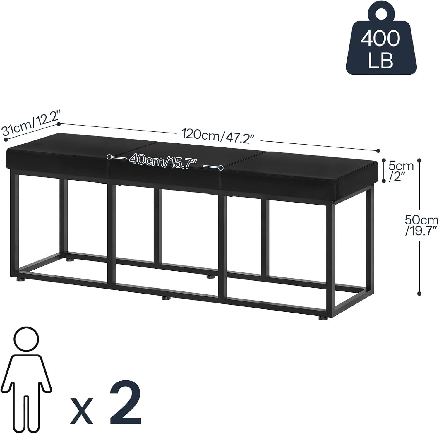 Colour Black Materials Particleboard, PU Leather-based, Sponge, Metallic Product Measurement 12.2″L x 47.2″W x 19.7″H Max. Static Load Capability 400 lb Bundle Contents 1 x Eating Bench; 1 x Accent Package; 1 x Directions