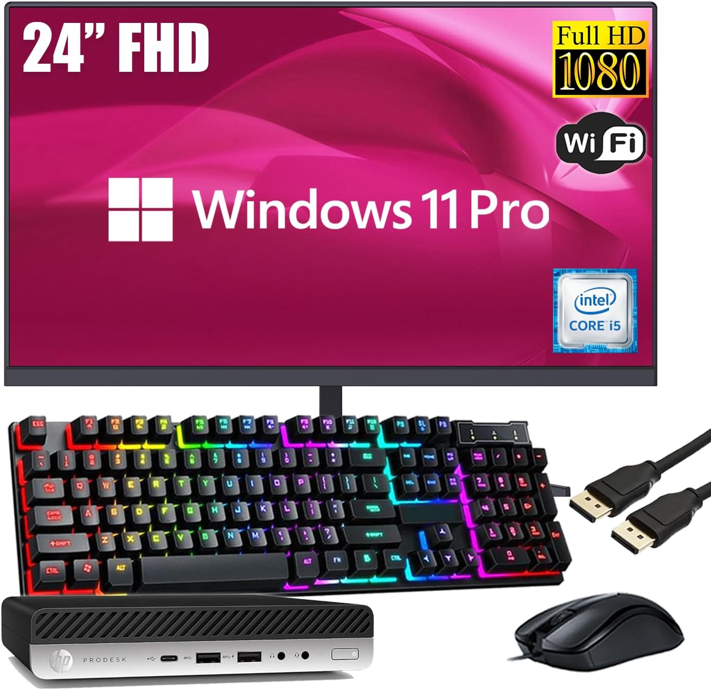 HP ProDesk 600 G4 Mini Desktop Laptop with 24″ Monitor, Intel Core i5-8500T 3.5GHz, 8GB RAM, 256GB SSD, Keyboard and Mouse, USB-C, WiFi & BT, Home windows 11 Professional