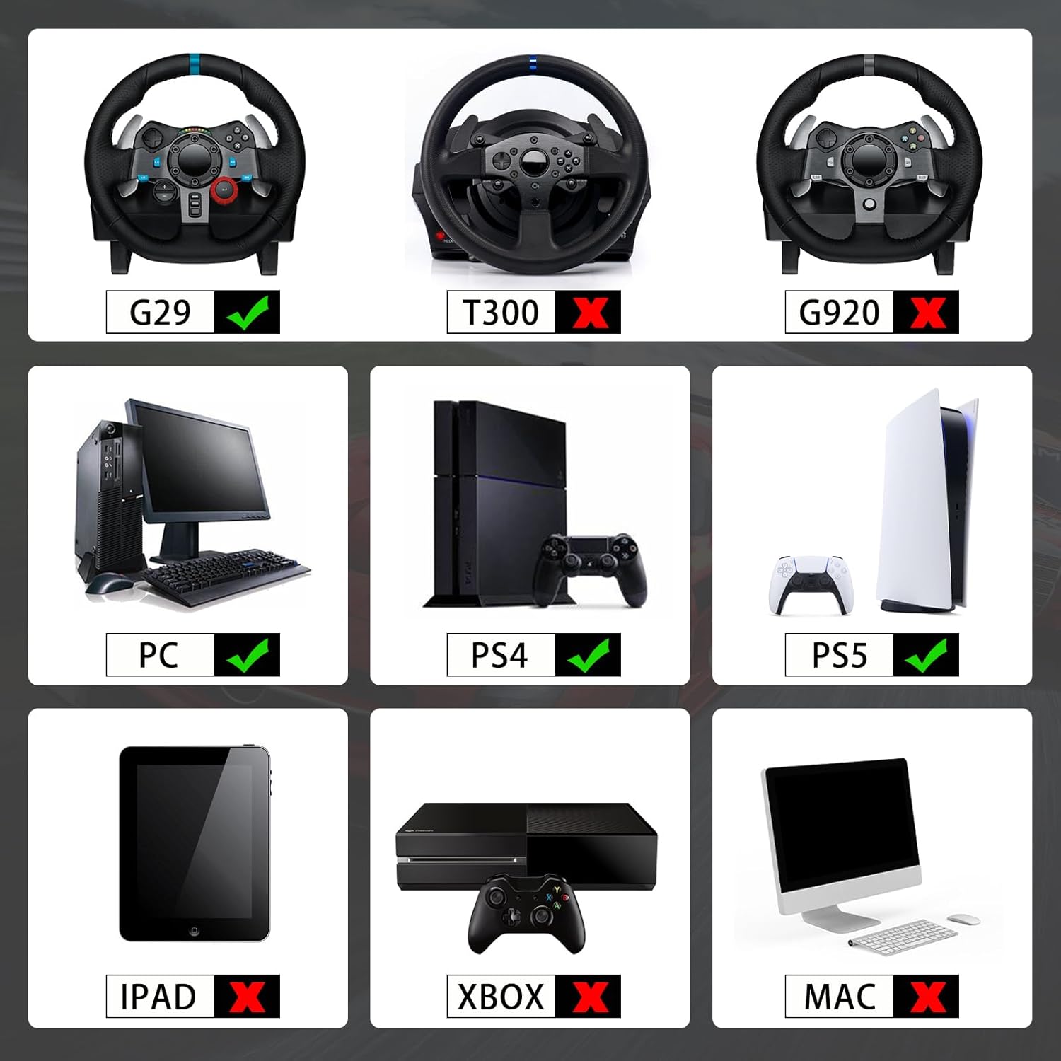 Suitable With Home windows 7, above PC home windows system PS4/5, Suitable With Logitech G29 T300.