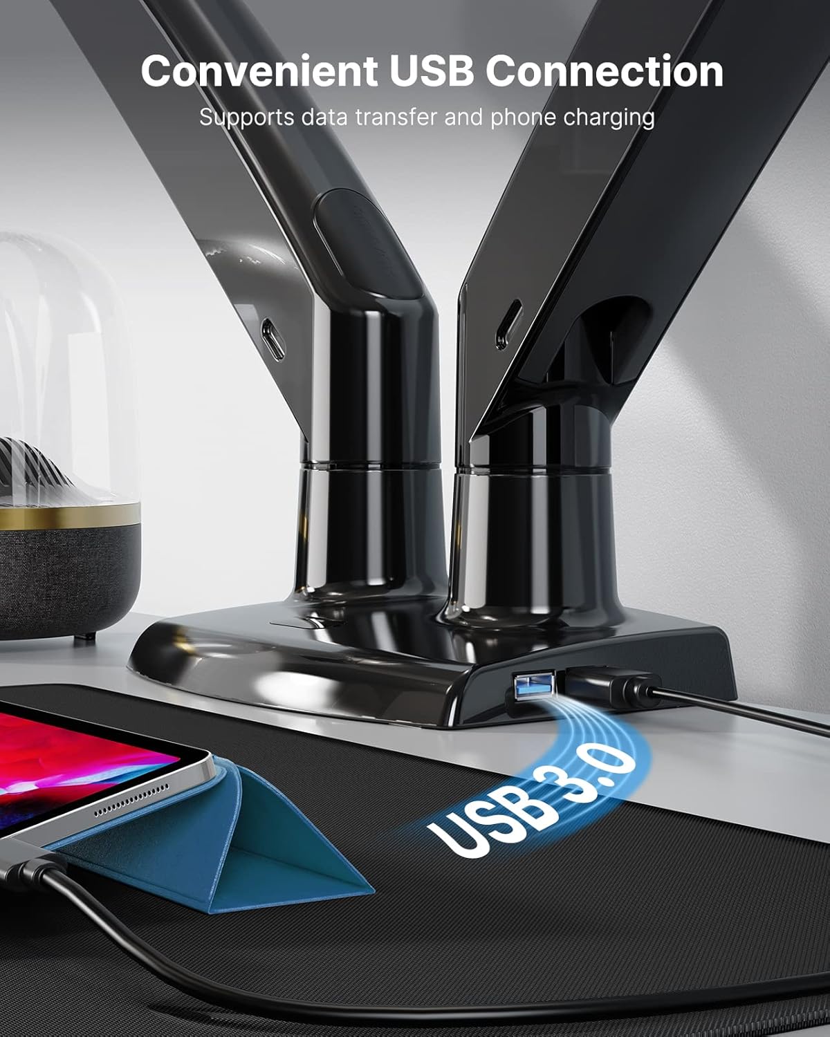 Elevated Stability & Comfort – The enlarged base and durable building guarantee huanuo twin monitor stand very good secure. Helps each clamp and bolt-through grommet mounting for desk thicknesses as much as 3.54″. The opening for grommet mounting needs to be 0.39″ to 1.97″ in diameter; the built-in USB port supplies a straightforward solution to cost your USB units.