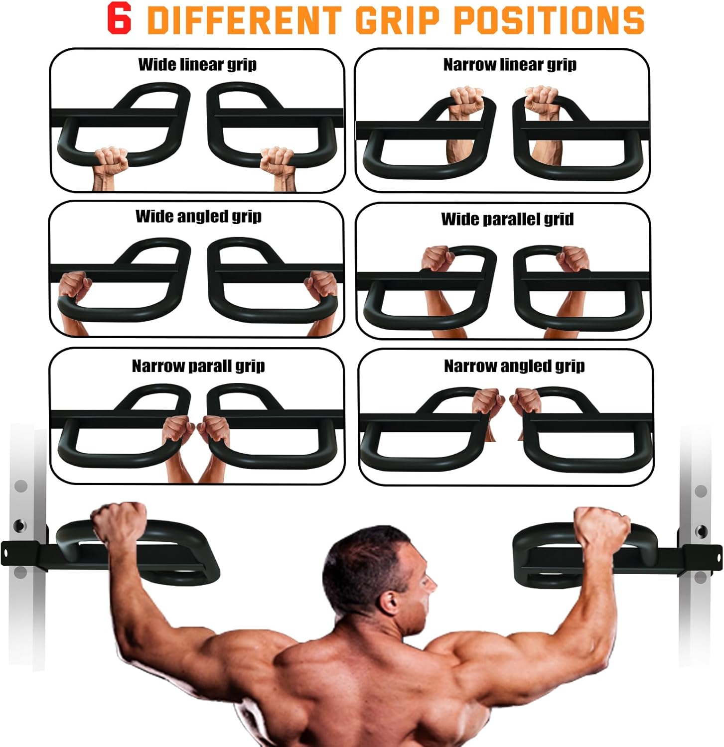 Multi-Grip Versatility – Select from 3 grip positions (angled, parallel, and linear) to focus on chest, triceps, and again muscle mass. Preferrred for dips, inverted rows, pull-ups, and push-ups