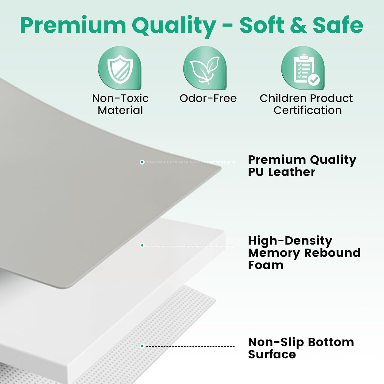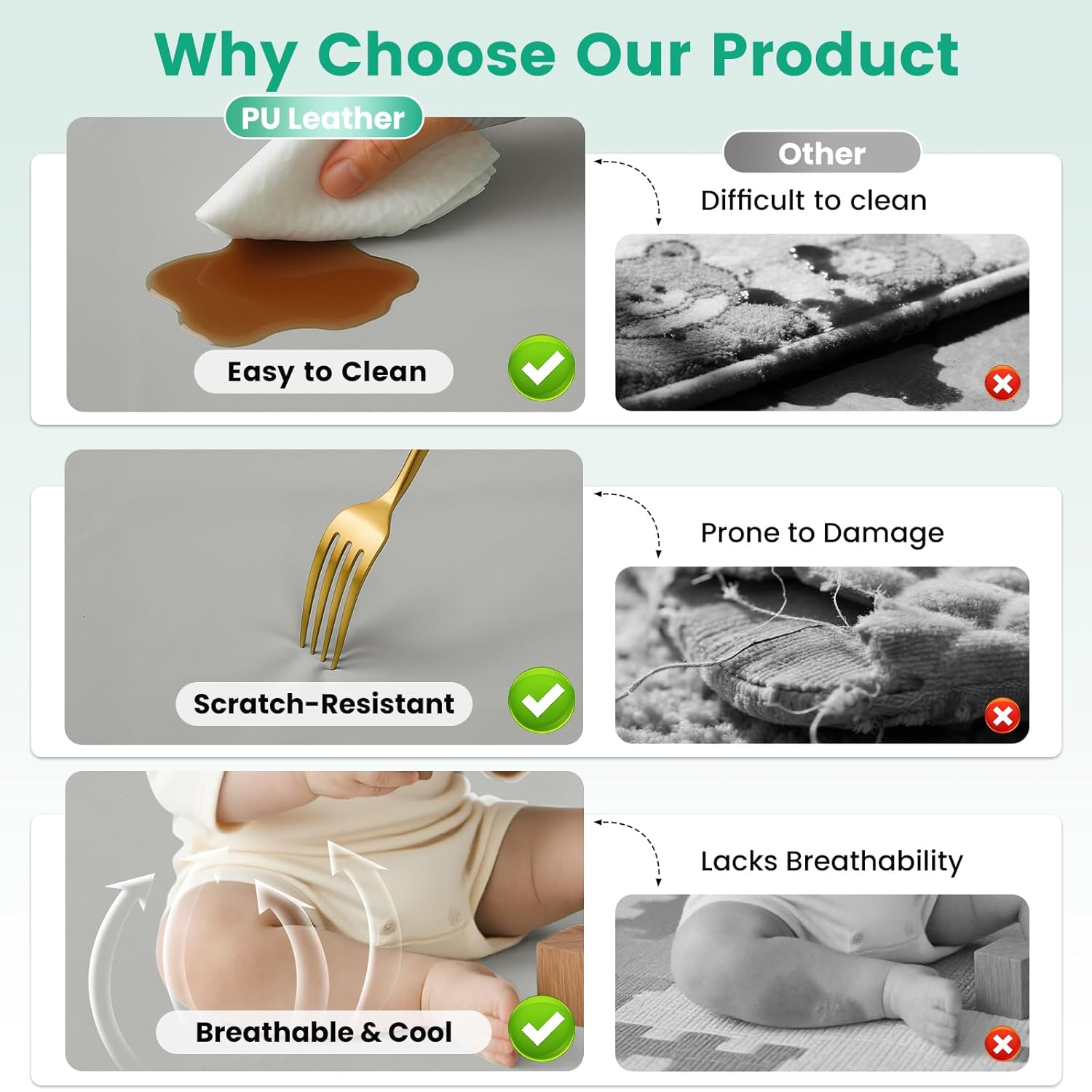 Snug and Breathable Vegan Leather-based Floor – Tender But Sturdy — Made with high-quality PU leather-based, this premium child mat for flooring is mild on child’s pores and skin but robust sufficient for day by day use. The fashionable look of leather-based child mat that blends with your own home décor.