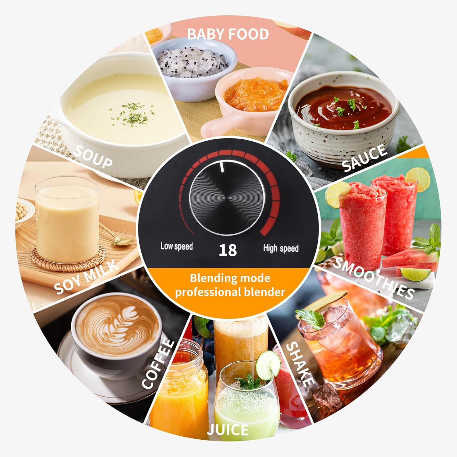 2200W POWERFUL MOTOR & 6 BLADES: Our high-speed blenders with the highly effective 2200W motor as much as 32000 RPM can break the cell partitions of each mushy and laborious elements in seconds. The upgraded 6 lengthened sharp blades makes mixing vary wider and extra environment friendly.