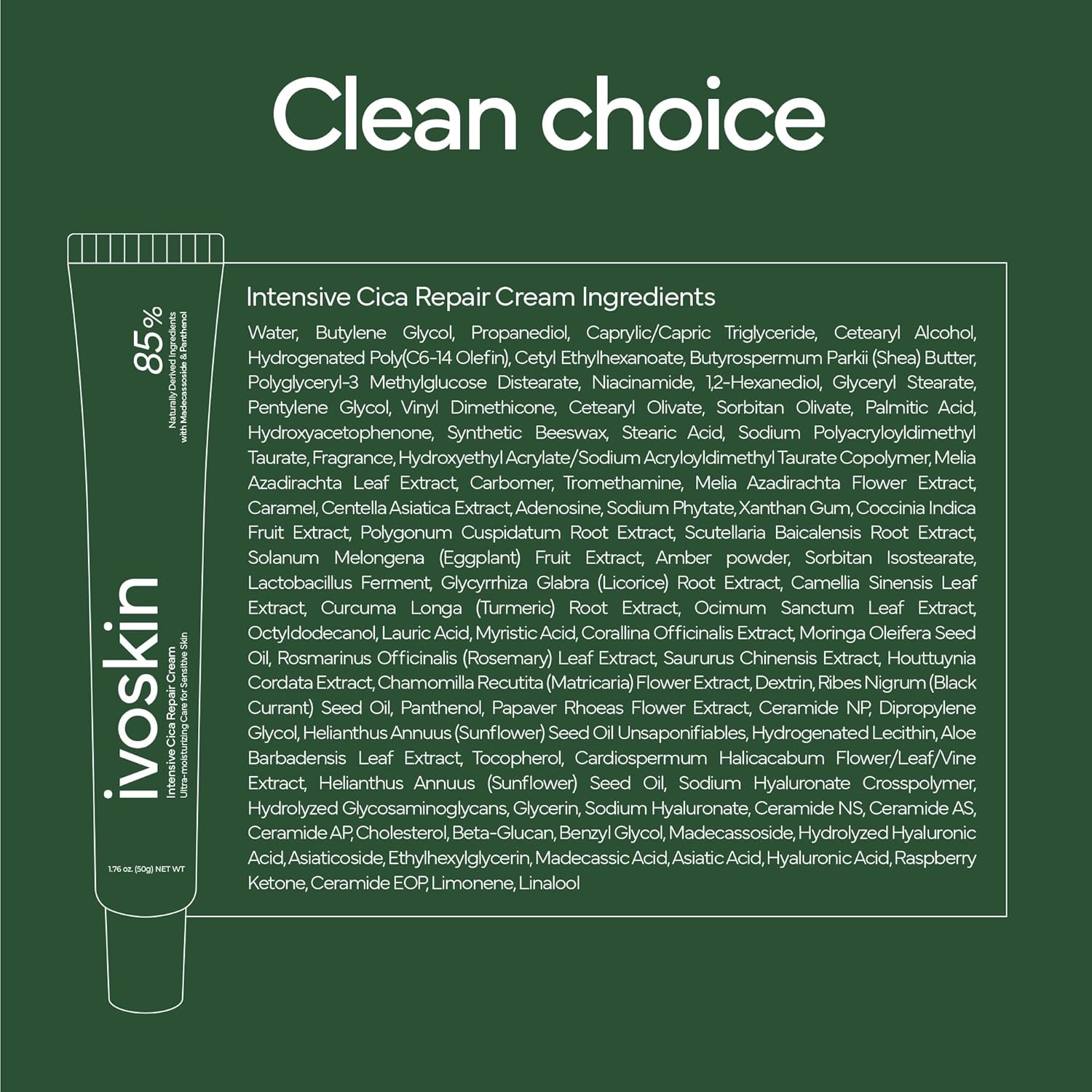 INTENSIVE SKIN REPAIR: A strong mix of Centella Asiatica Extract and plant-based elements, designed to appease and restore irritated pores and skin.