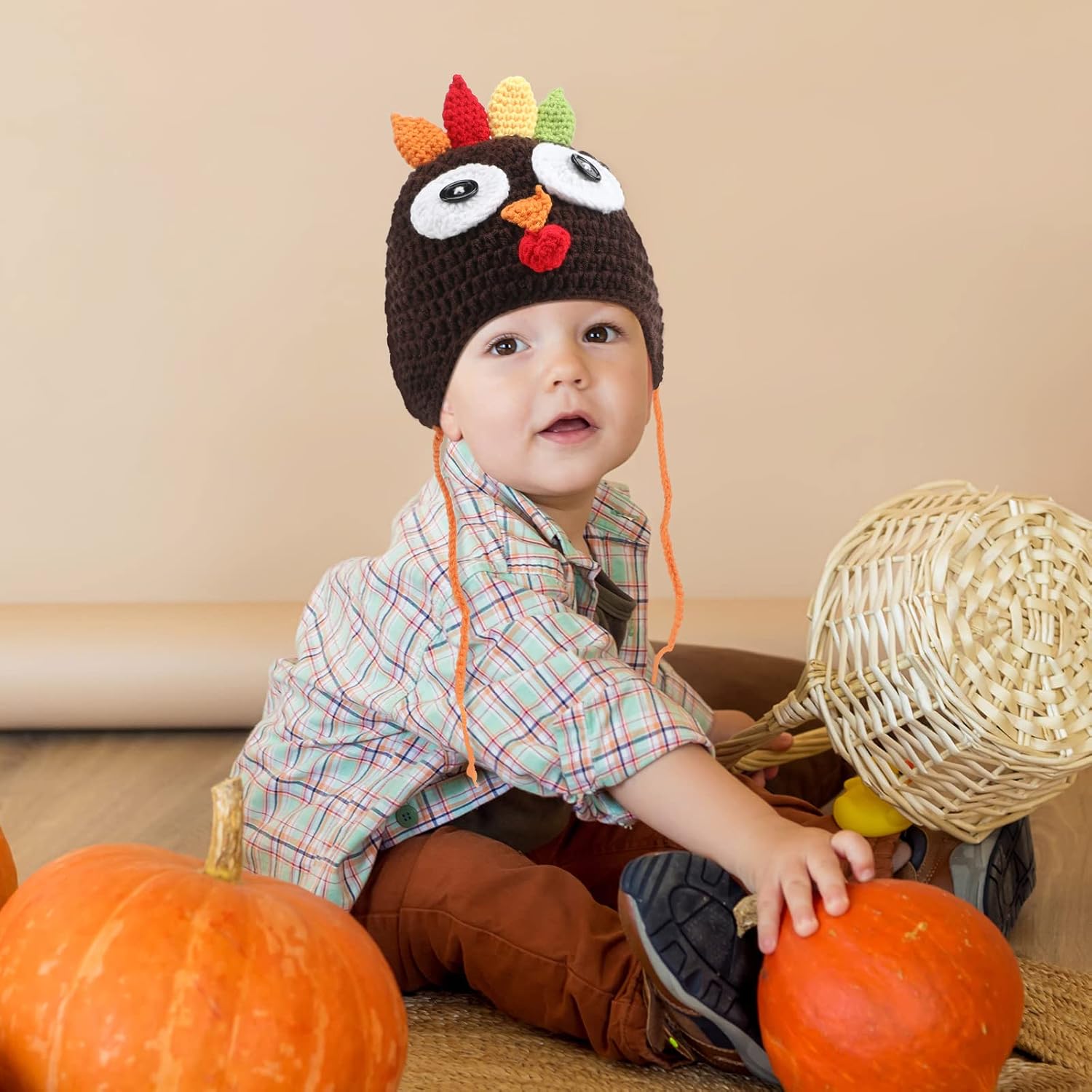 Jiuguva 3 Items Child Crochet Beanie Set, Turkey Hat Pumpkin Beanie an…