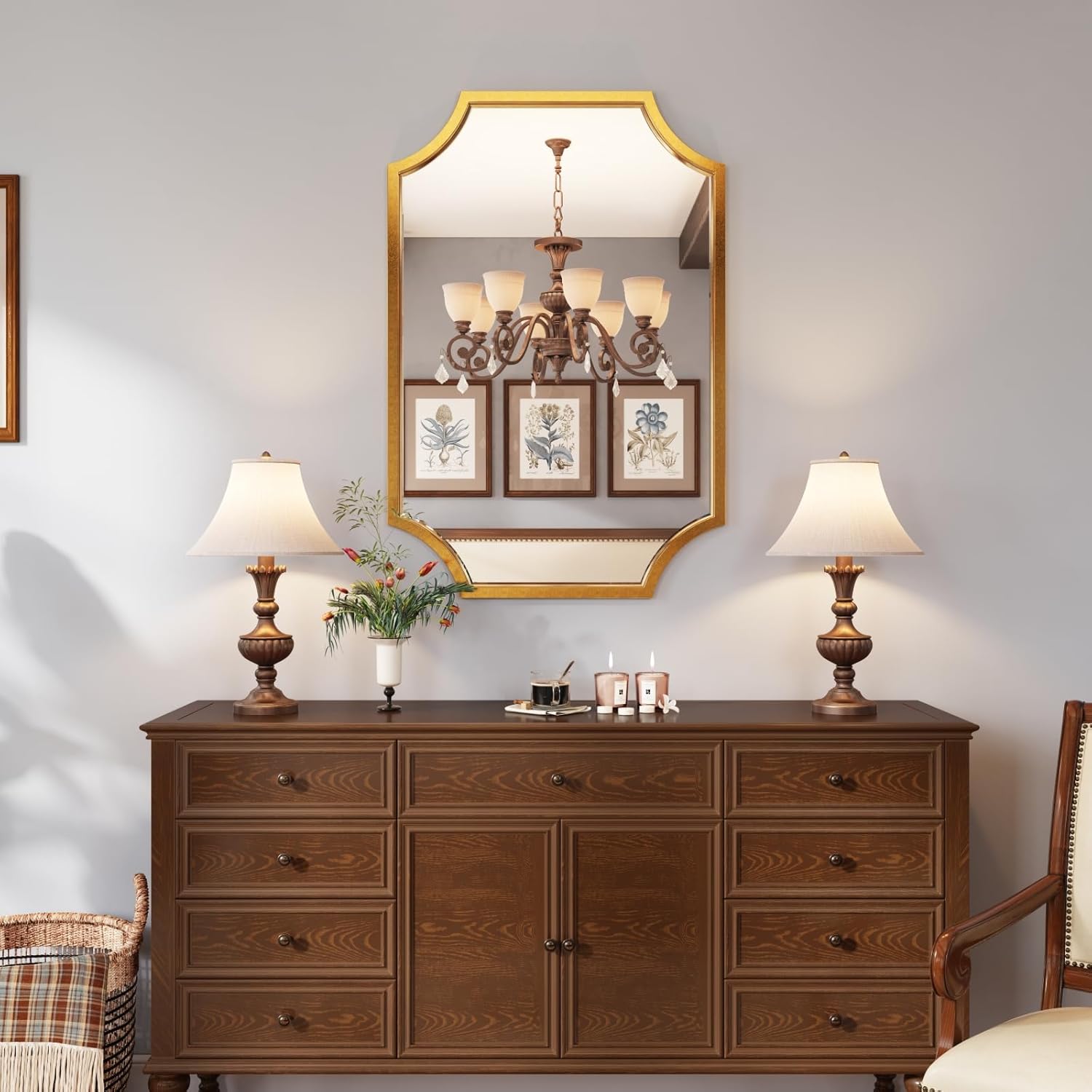 SOPHISTICATED DESIGN: The mirror body options a chic scalloped nook form. It is a conventional mirror model, however it additionally offers the mirror a easy and fashionable look, and it may be positioned over a cupboard or hearth or hung in your lavatory, lounge, dinning room, or kitchen.