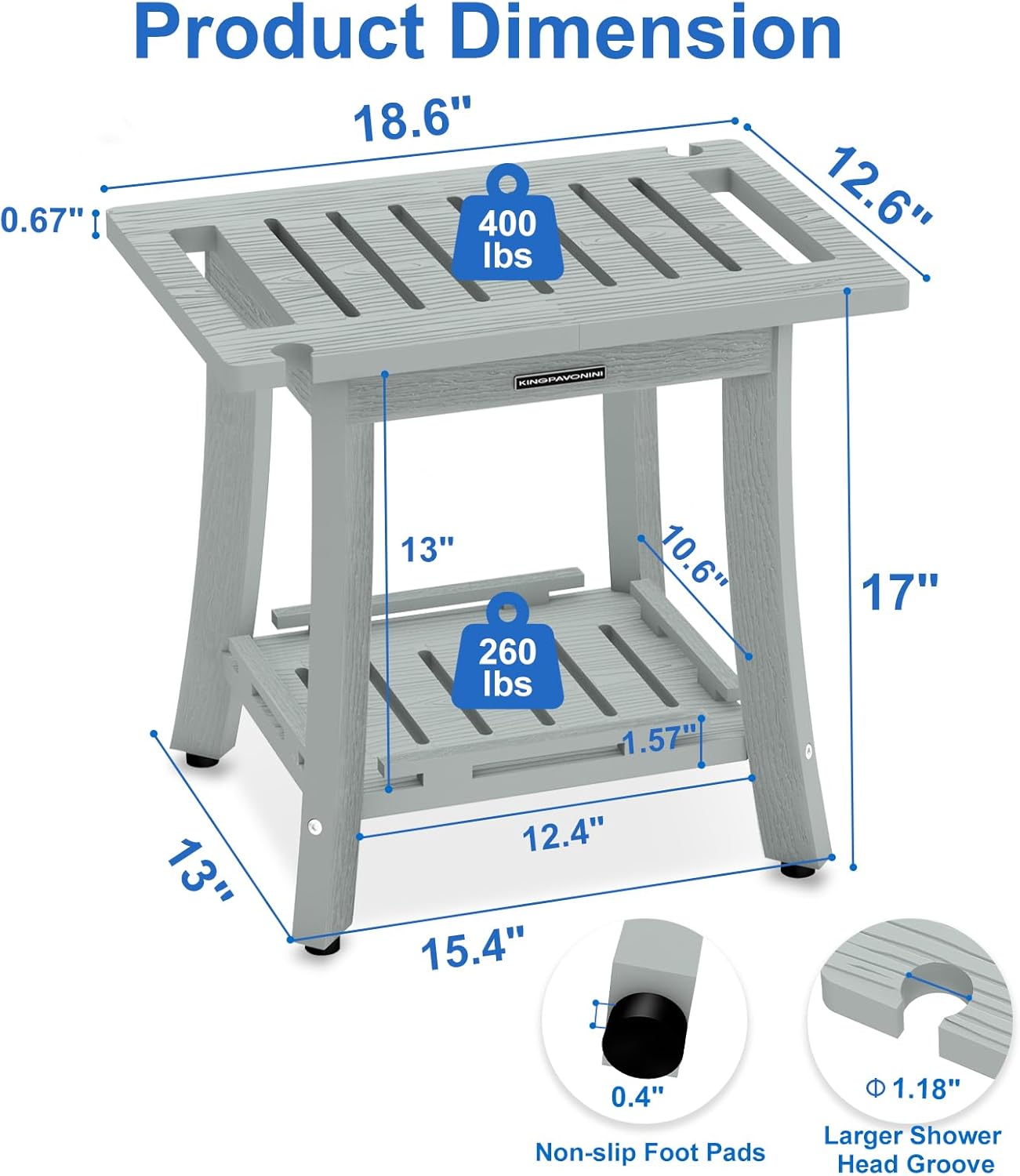 Waterproof & Sturdiness of HDPS: The Kingpavonini bathe bench options 100% high-quality HDPS, a fabric that mixes the look of pure wooden with enhanced sturdiness. Immune to water, climate, scratches, and stains, HDPS affords superior efficiency over conventional wooden. It’s low upkeep and straightforward to wash