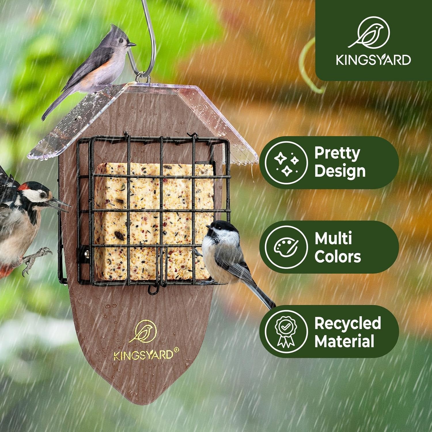 Sturdy Materials: Constructed from sturdy recycled plastic and rust-proof powder-coated metal, this feeder withstands harsh out of doors parts like rain, snow, and even excessive warmth or chilly, making it ideally suited for year-round use