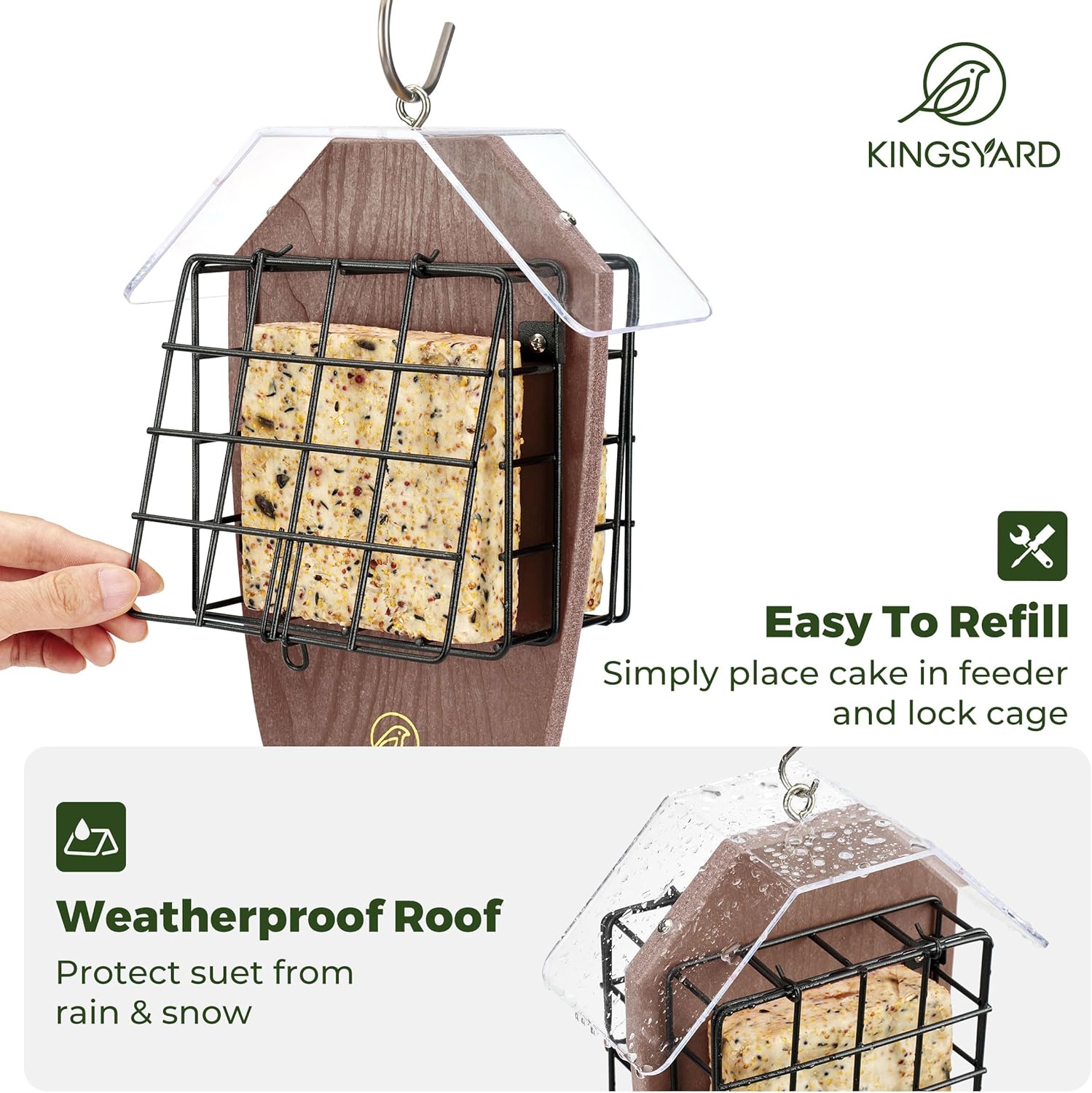 Simple to Refill & Clear: Fill it with suet cake or seed block within the winter and oranges, bread, or nesting materials in the summertime. Merely unlock the metallic cage to refill with out taking it from its hanging place