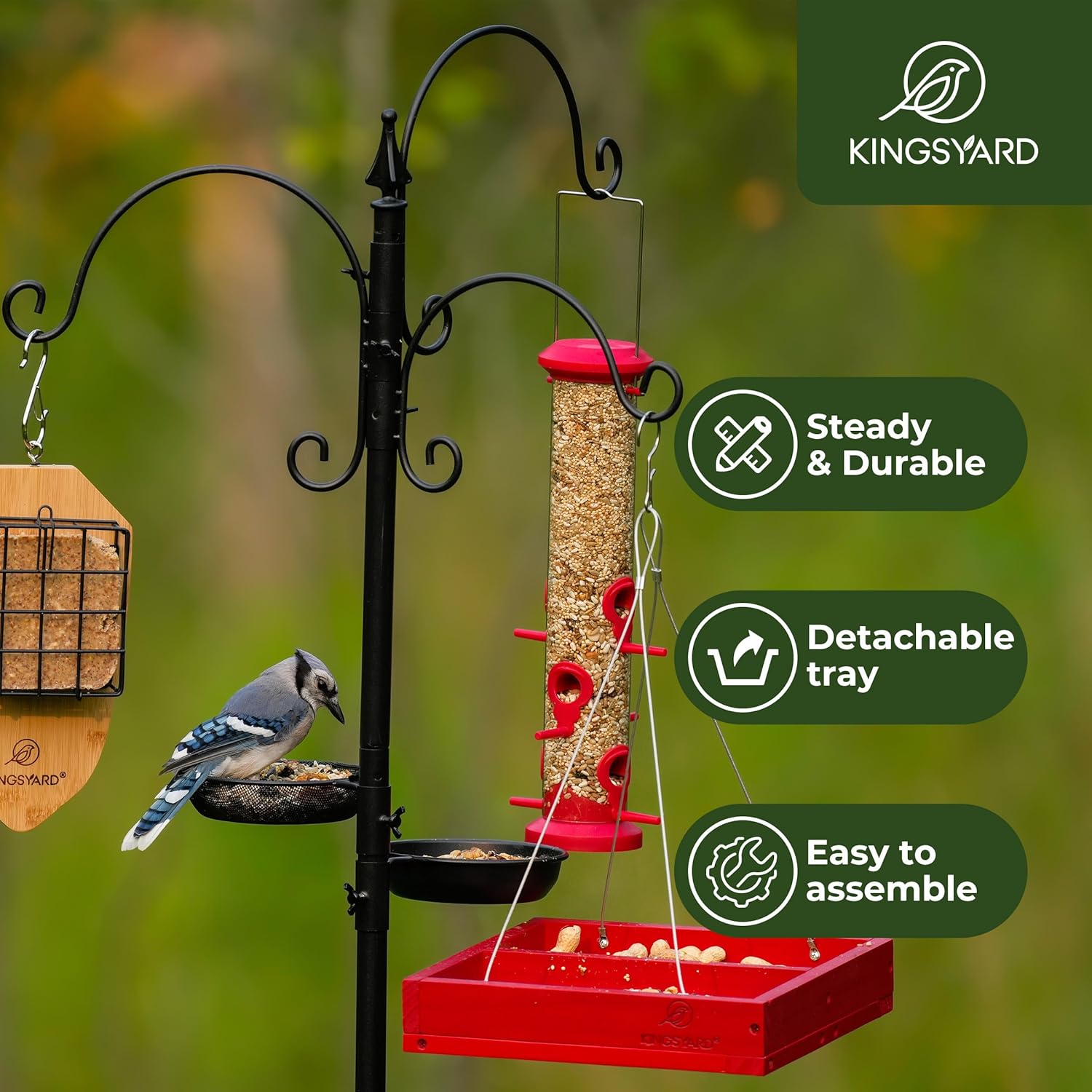 Enhanced Stability: Upgraded with a sturdy 5-prong base for superior stability; Stays securely upright even in harsh climate; Adjustable hooks allow you to appeal to a wide range of wild birds by setting them at completely different heights