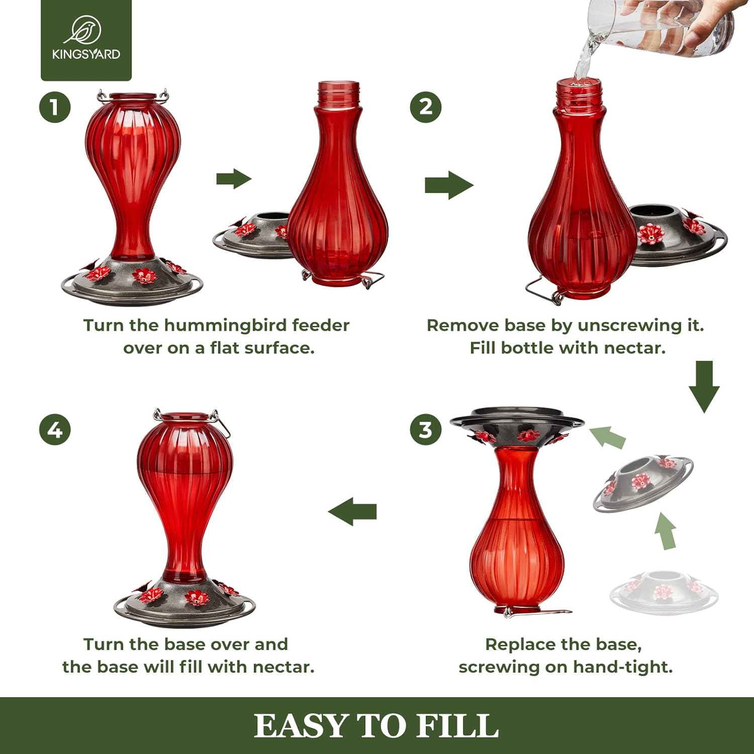 EASY TO REFILL AND CLEAN: Holds up to 24 oz of nectar. Wide mouth bottle design is easy for filling and cleanning, and whole feeder could be disassembled smoothly for easy cleanning.