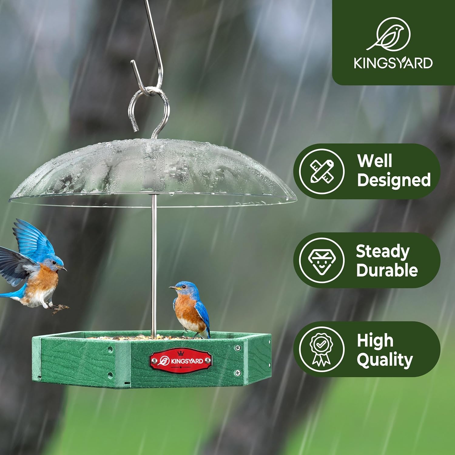 Easy to Install: Simple assembly with no tools required; Rainproof dome protects seeds from moisture while drainage holes ensure optimal airflow to keep food dry and fresh