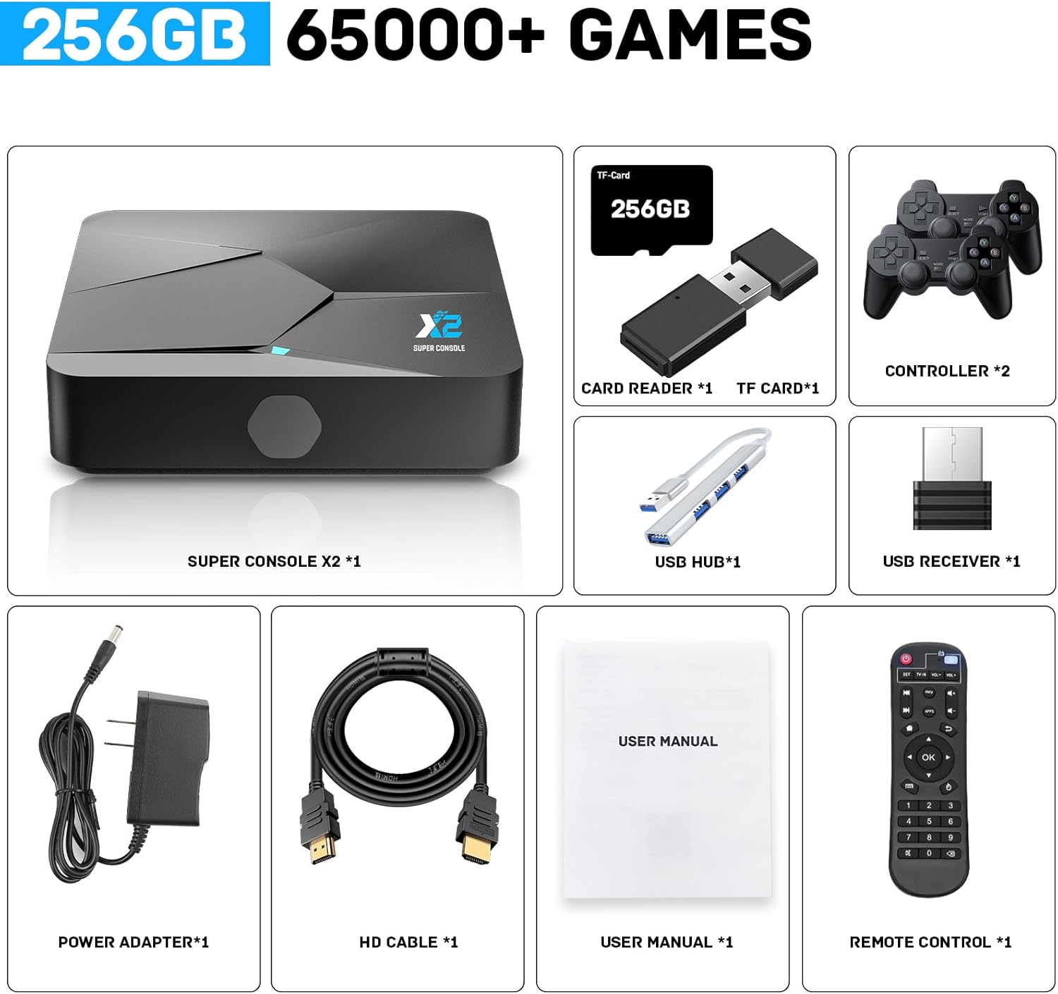 【Wealthy Traditional Video games】:Tremendous console X2 traditional video games console built-in 65,000+ video games (together with 3D video games), helps including video games by your self and Save recreation progress at any time. (Please contact us for recreation listing)