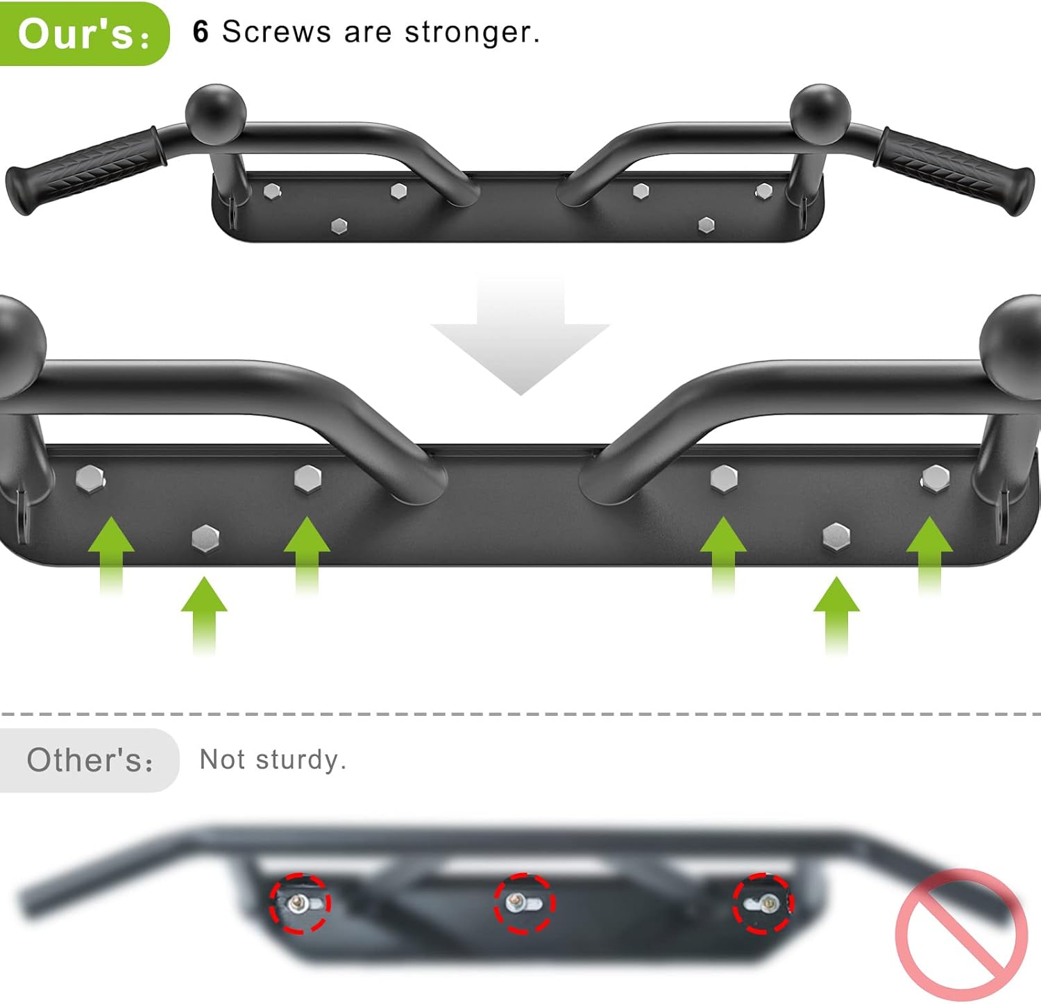 Heavy Responsibility and Secure: Manufactured from 1 3/10″ sturdy metal tubing, this pull up bar can assist as much as 440 lbs and stand up to years of use. The 6-hole design ensures extra stability and security than different wall mounted bars.