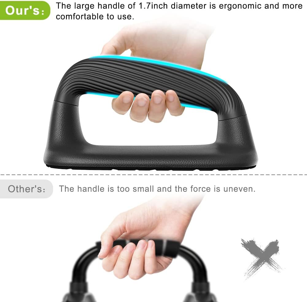 Comfortable Handle: The handles of push-ups are made of high-quality soft plastic, protect your hands, it’s not easy to get calluses. The diameter is 1 3/5 inches, and the grip is comfortable and ergonomic.