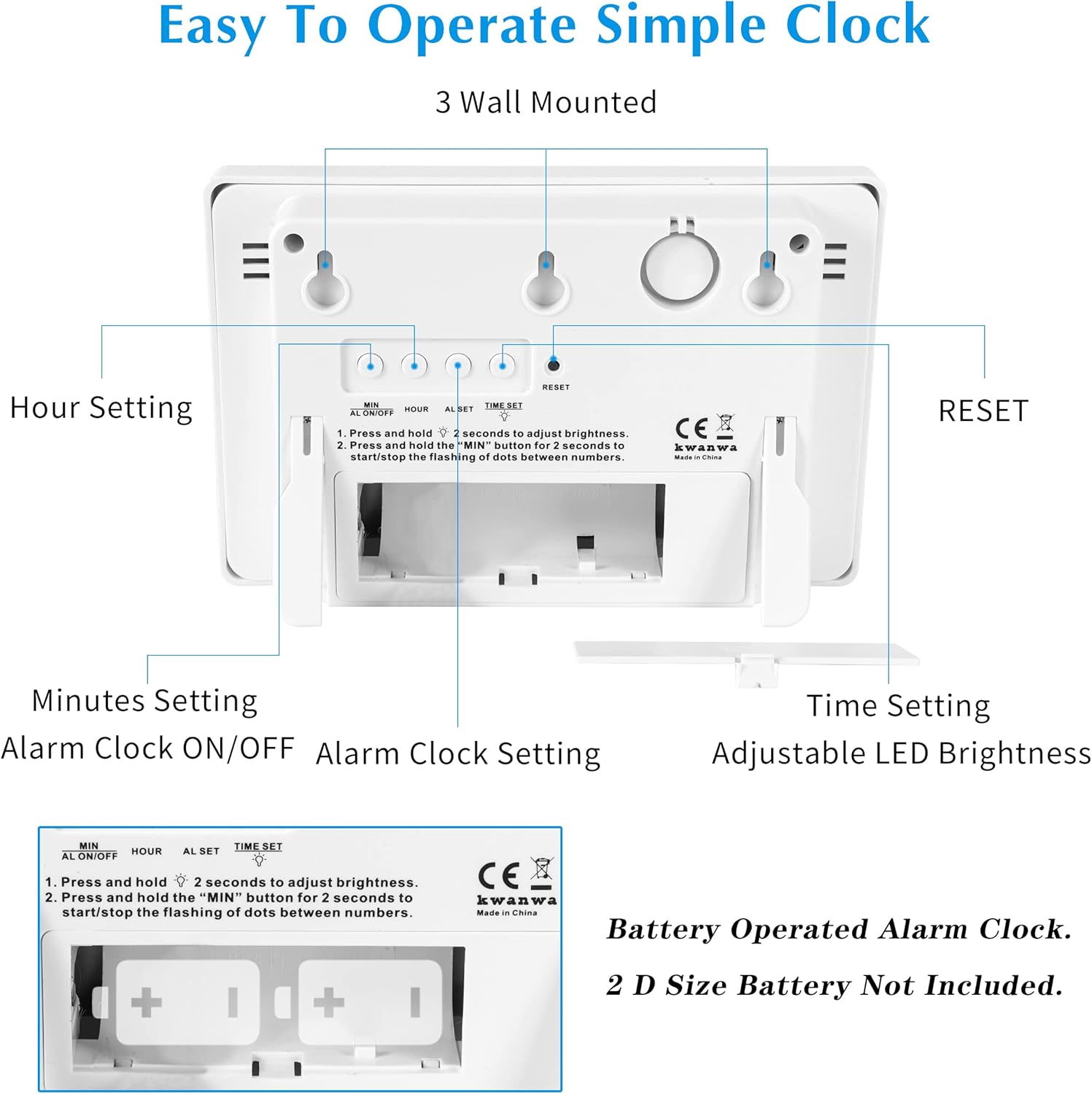 No Messy Cords – The LED digital alarm clock is battery operated (NOT electrical plug-in with battery back-up), no messy cords, can be utilized anyplace you need. Alkaline D Cell Batteries ONLY. 2 PCS completely recent batteries will help the alarm clock going to work for greater than 12 months.