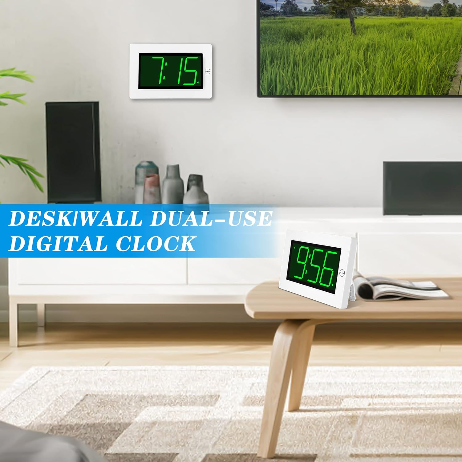 Desk-top/Wall-mounted -The clock with two unfold stand legs on the again, you need to use it as a desk clock, desk clock, bedside clock and nightstand clock. The clock has 3 wall-mounting cling holes, you additionally use it as a small wall clock. A contemporary ornament LED digital clock, clock for bed room, clock for kitchen,clock for lounge or clock for toilet.