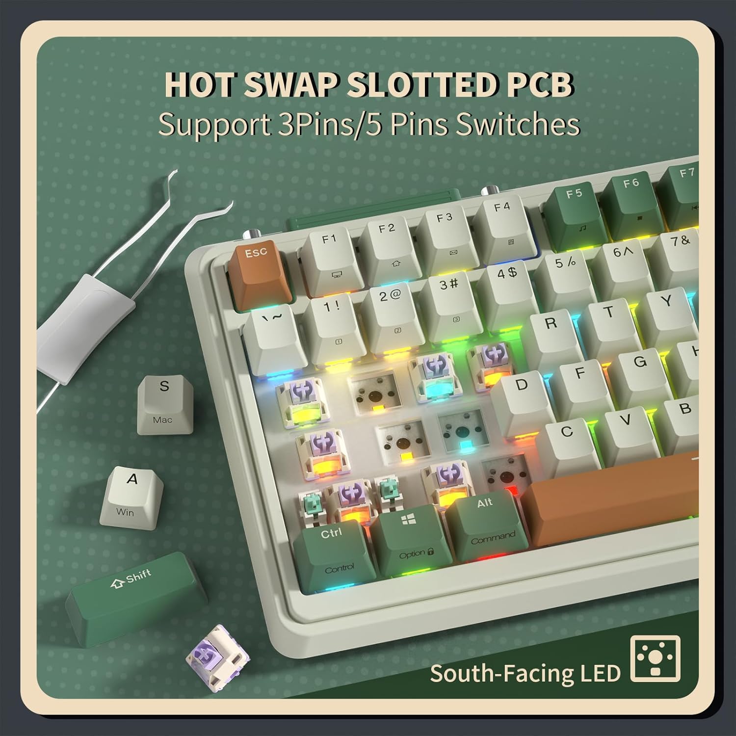 Premium Customized Scorching Swap Switches – The pre-lubed eternity tactile switches with south-facing clear gentle diffusers present a transparent keystroke feeling, a tremendous out-of-the-box clear typing sound, and a brighter RGB backlight impact that’s pleasant to RGB lovers. The new swappable PCB of this gasket mounted keyboard is appropriate with 3Pin or 5Pin Switches.