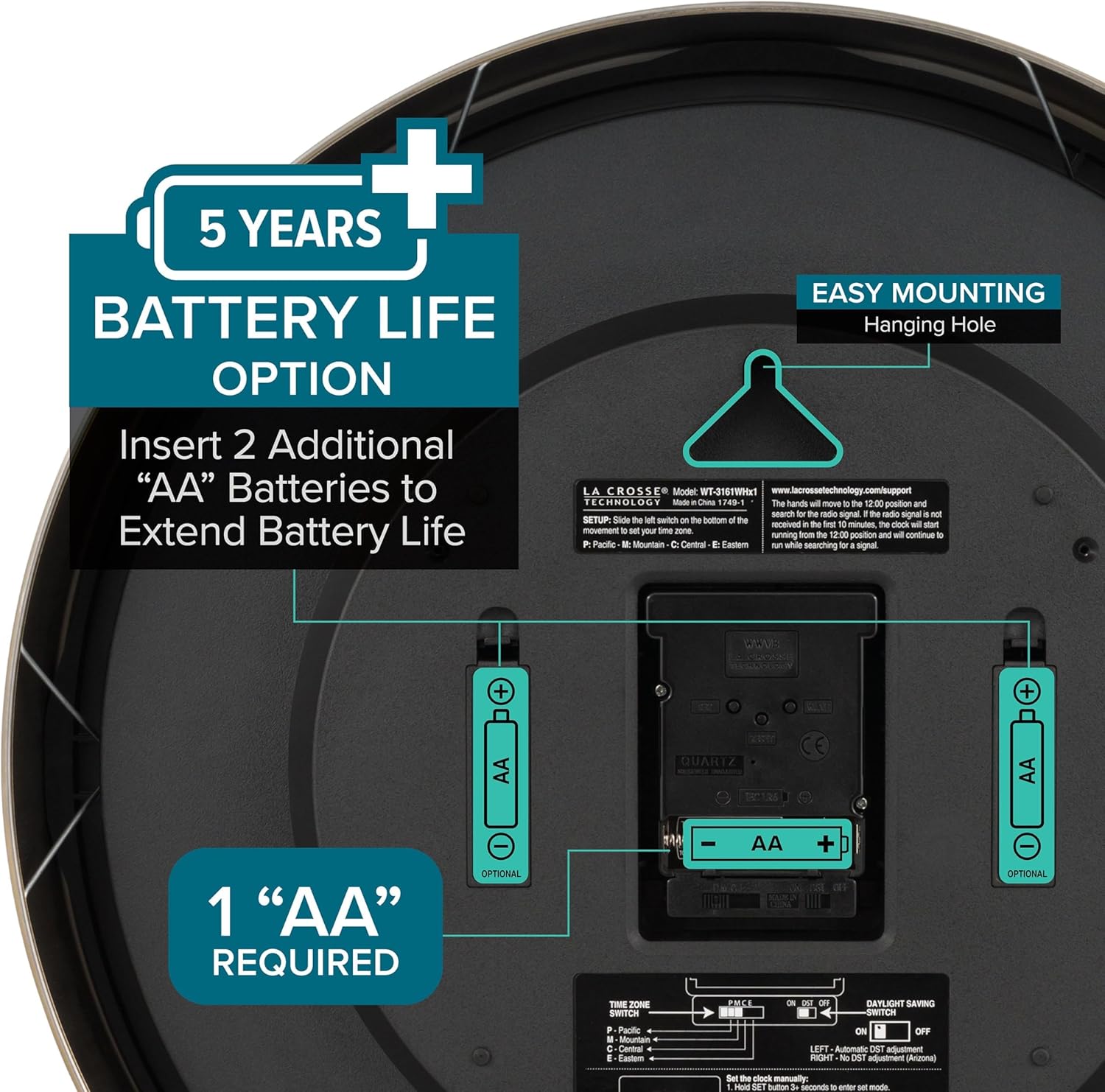 La Crosse Know-how Wall Clock, Steel, 16-inch Dia. (WT-3161WH)