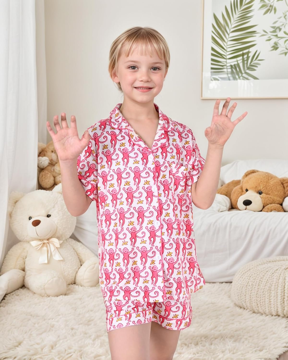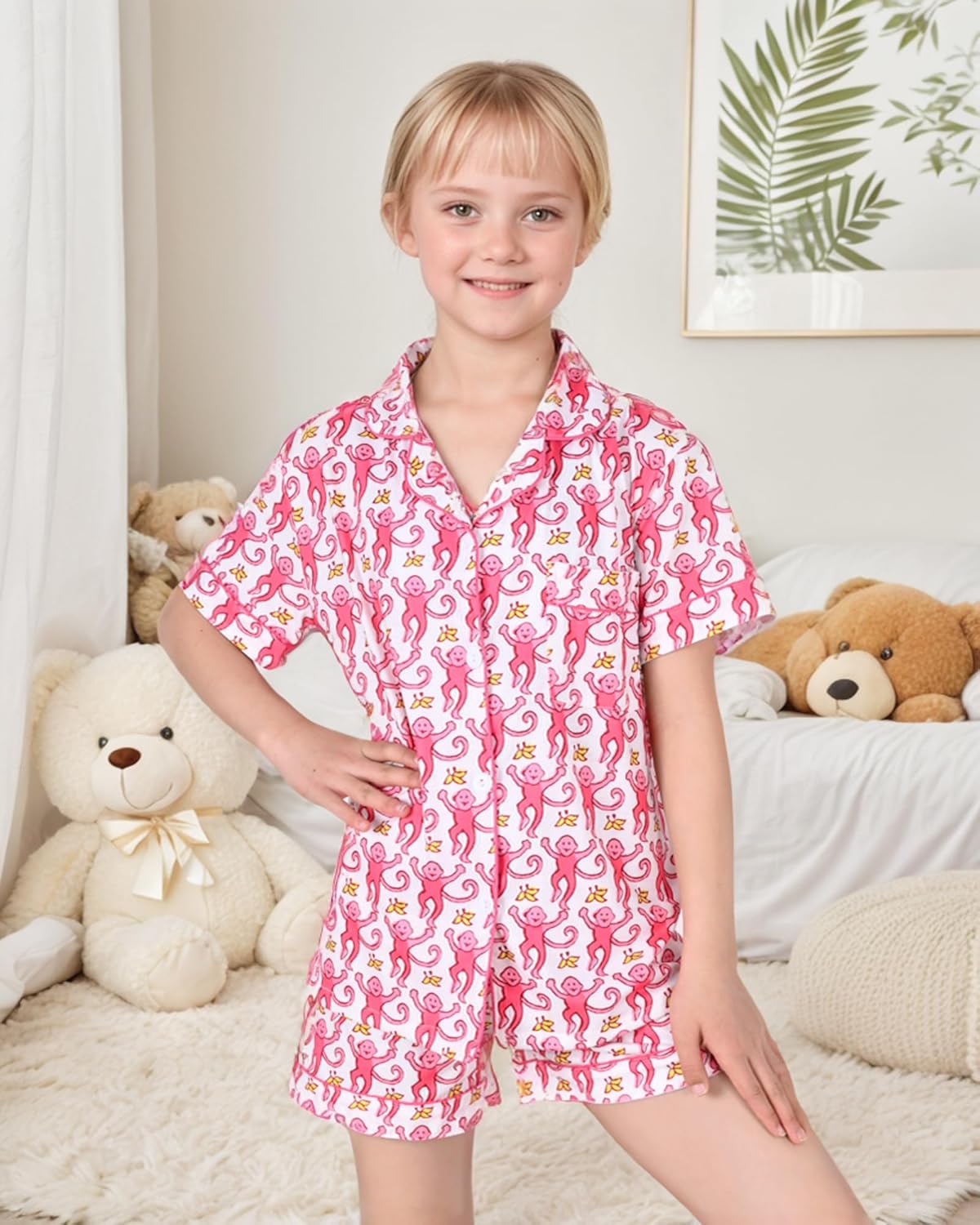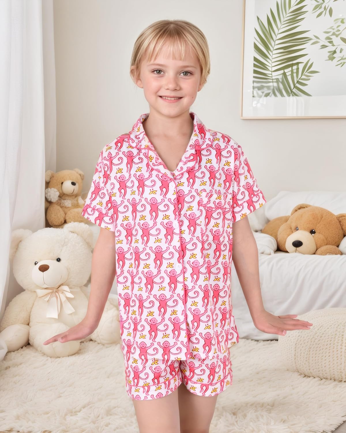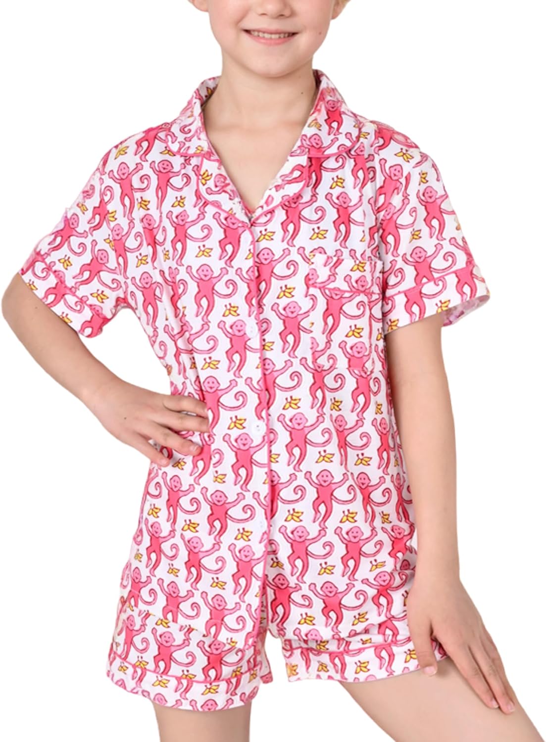Ladies Summer time Outfit, Children 2 Piece Button Down Monkey Seaside Shorts Set …