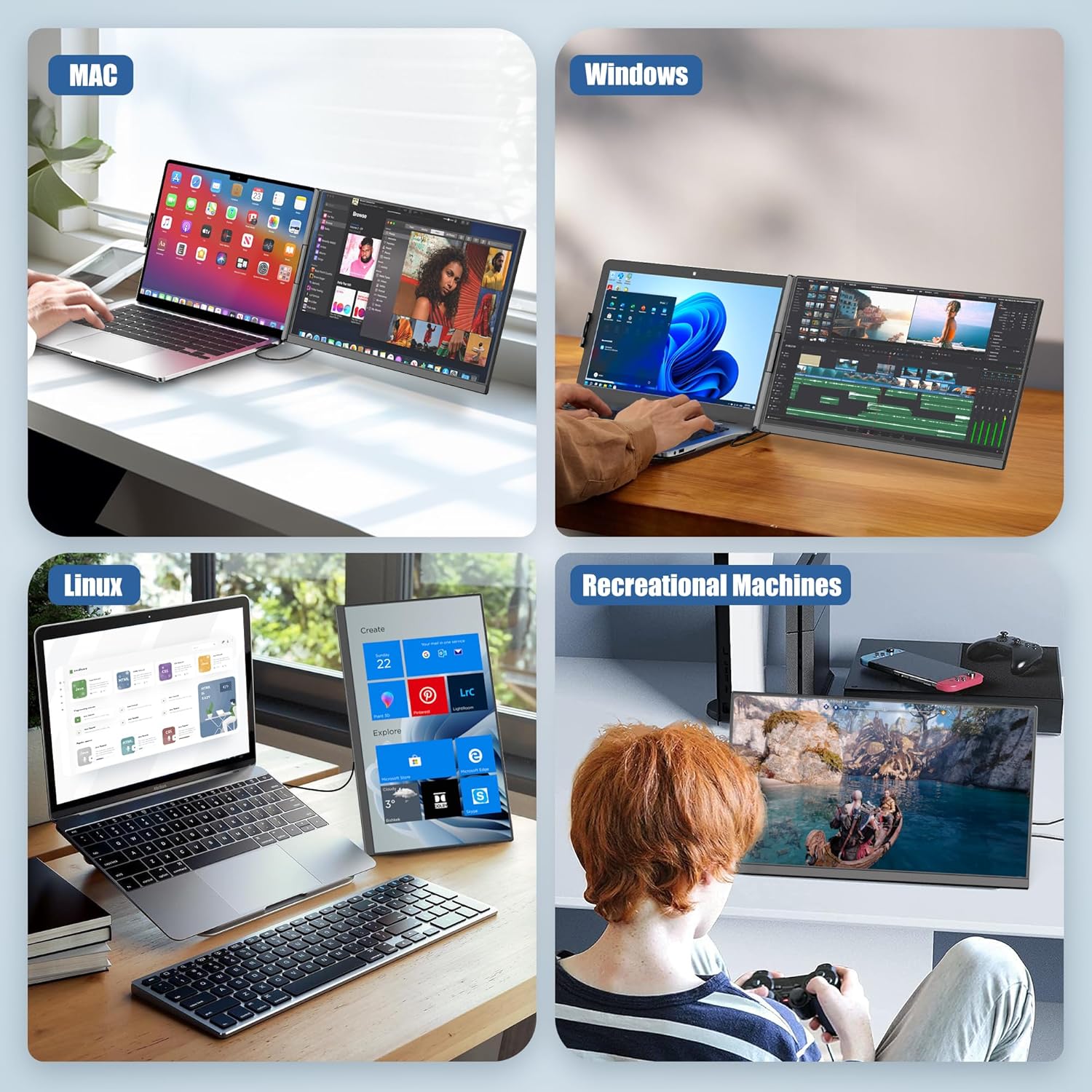 Plentiful Compatibility-The laptop computer display screen extender has no restrict on the dimensions of the laptops, and this construction doesn’t put stress on the gadgets, and the transportable laptop computer monitor may be appropriate with quite a lot of working techniques, reminiscent of Home windows/Mac OS/Chrome/Linux. Additionally it is appropriate with many gadgets, reminiscent of laptops, desktops, mini PCs, recreation consoles and a few smartphones (Which have the full-featured Sort-C port and help micro-computer mode).