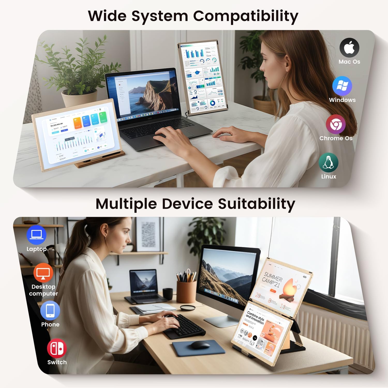 [Wide Compatibility] This laptop computer monitor extender is extensively appropriate with Home windows, MacOS, Chrome and Dex programs. For MacBook with M1, M2 or M3 chips and a few laptops with solely single display show as a result of compatibility points, please use the included H5 hub to attach the “USB C with DP” port of the second display, after which use an additional USB-A to USB-C cable to energy the “Kind C” port of that display, obtain the driving force as prompted(Driver is required solely when utilizing H5 HUB.)