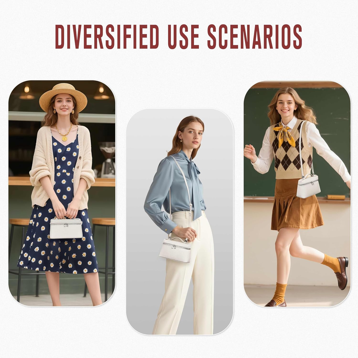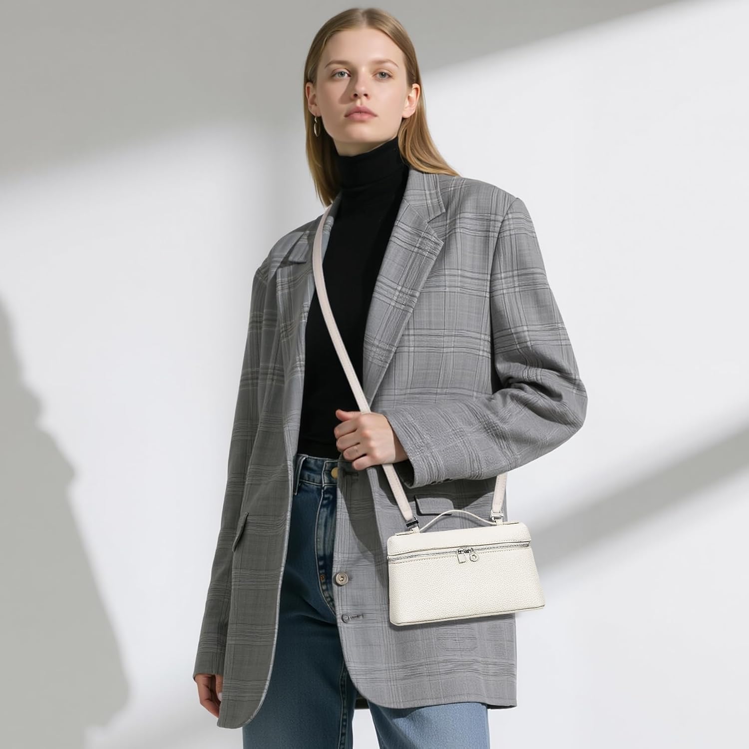 Elevate your on a regular basis fashion with this subtle small leather-based crossbody bag in pristine white. The pebbled texture provides an expensive contact whereas offering sturdiness for day by day use. That includes glossy silver {hardware} and a smooth-gliding zipper closure, this bag combines fashion with practicality. The adjustable shoulder strap ensures a snug match for any peak, whereas the compact measurement makes it good for carrying necessities with out bulk. The structured design maintains its form fantastically, and the premium leather-based development guarantees lasting high quality. This versatile accent transitions seamlessly from day to night, complementing each informal and dressy outfits. The principle compartment presents organized storage in your cellphone, pockets, keys, and different day by day requirements. Its clear traces and timeless design make it a wardrobe staple that by no means goes out of favor. The white coloration creates a recent, subtle look that pairs effortlessly with any outfit in your wardrobe.
