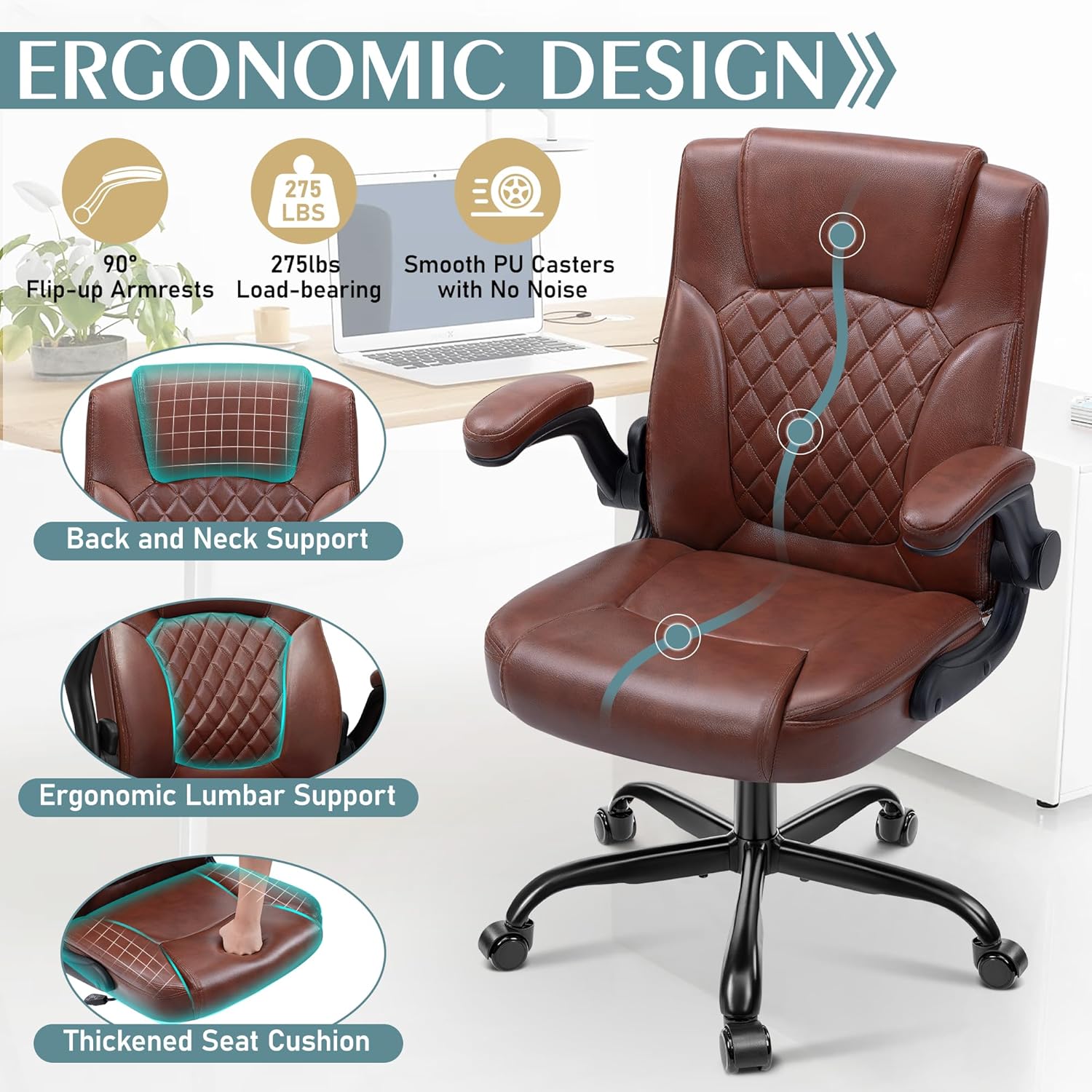 Ergonomic Consolation: 3.94 Inches peak adjustable excessive again leather-based chair with 360° free swivel. Pc chair with curved padded backrest supplies ergonomic lumbar assist that releases again stress for resting