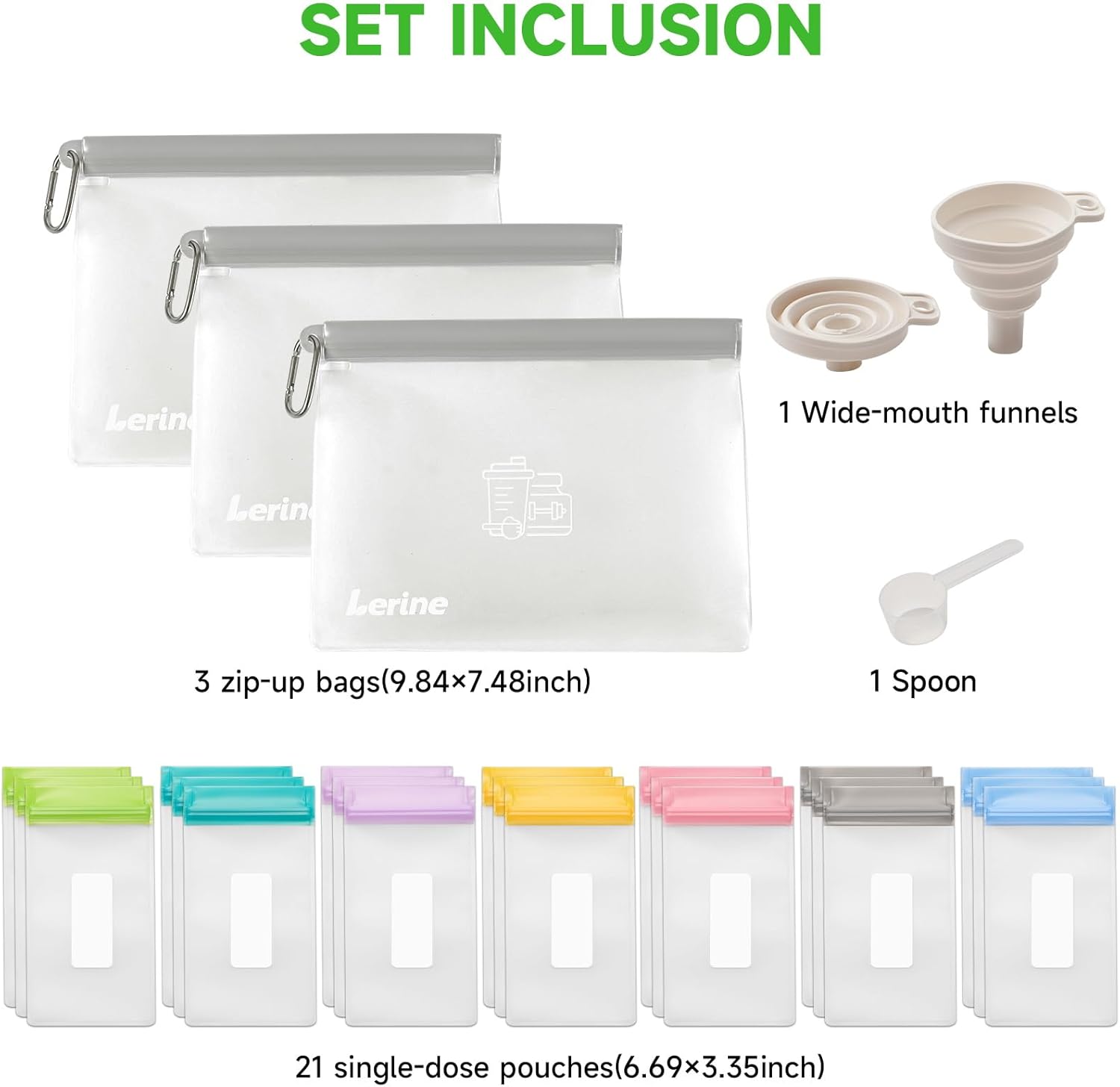 Handy Protein Powder Journey Container Set: The protein powder journey containers is designed for on-the-go health fans, that includes 21pc (3.35” x 6.69”) single dose luggage and 3pc (9.84” x 7.48”) massive zip luggage. With additional capability, you possibly can simply carry your favourite dietary supplements wherever you journey.