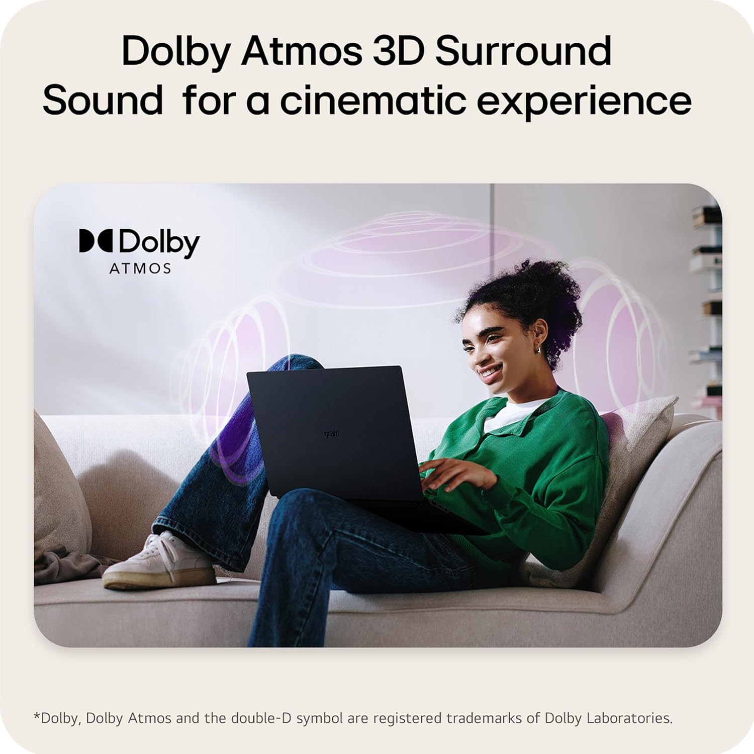 Encompass Sound to the Subsequent Degree – The gram options 4 built-in audio system delivering wealthy, highly effective sound nice for music, motion pictures, and extra. Dolby Atmos 3D Encompass Sound provides a cinematic expertise with 360-degree audio, powered by a 4-channel amplifier. Get pleasure from premium, immersive sound – anyplace you go.