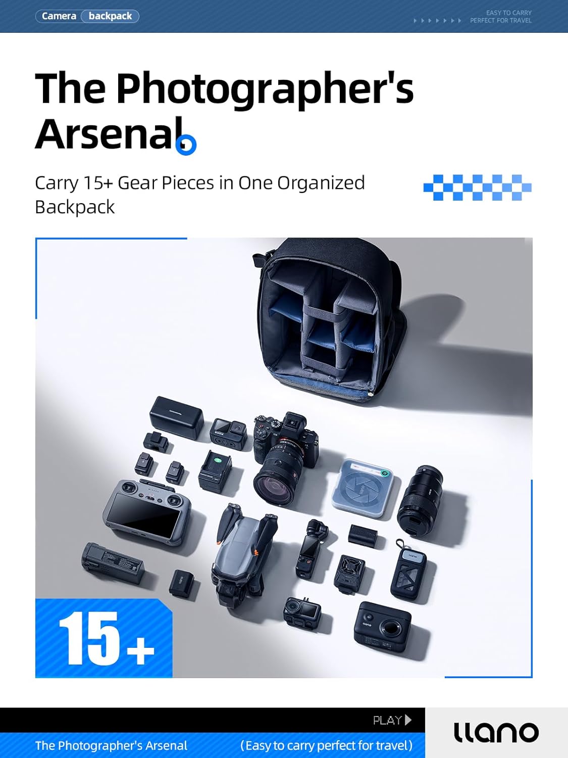 Ergonomic Carry System:3D breathable mesh straps + honeycomb again padding for even weight distribution. Ventilated again panel minimizes warmth buildup throughout lengthy shoots or hikes.