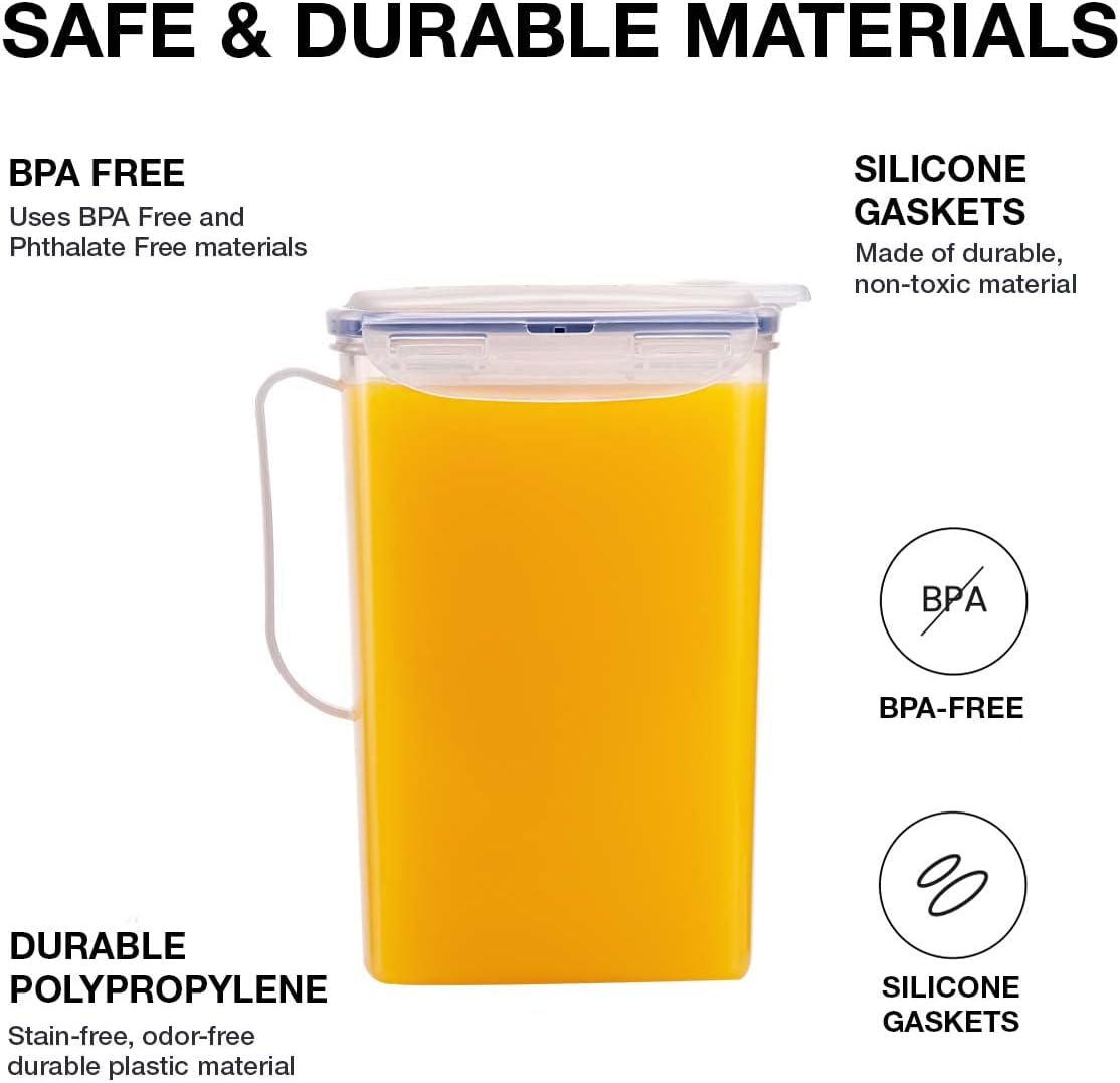 Leakproof: LocknLock Fridge Jug is leakproof, hermetic, and watertight. Our patented 2-sided hinge locking system and silicone sealed flip prime lid prevents spills and retains drinks/drinks recent.
