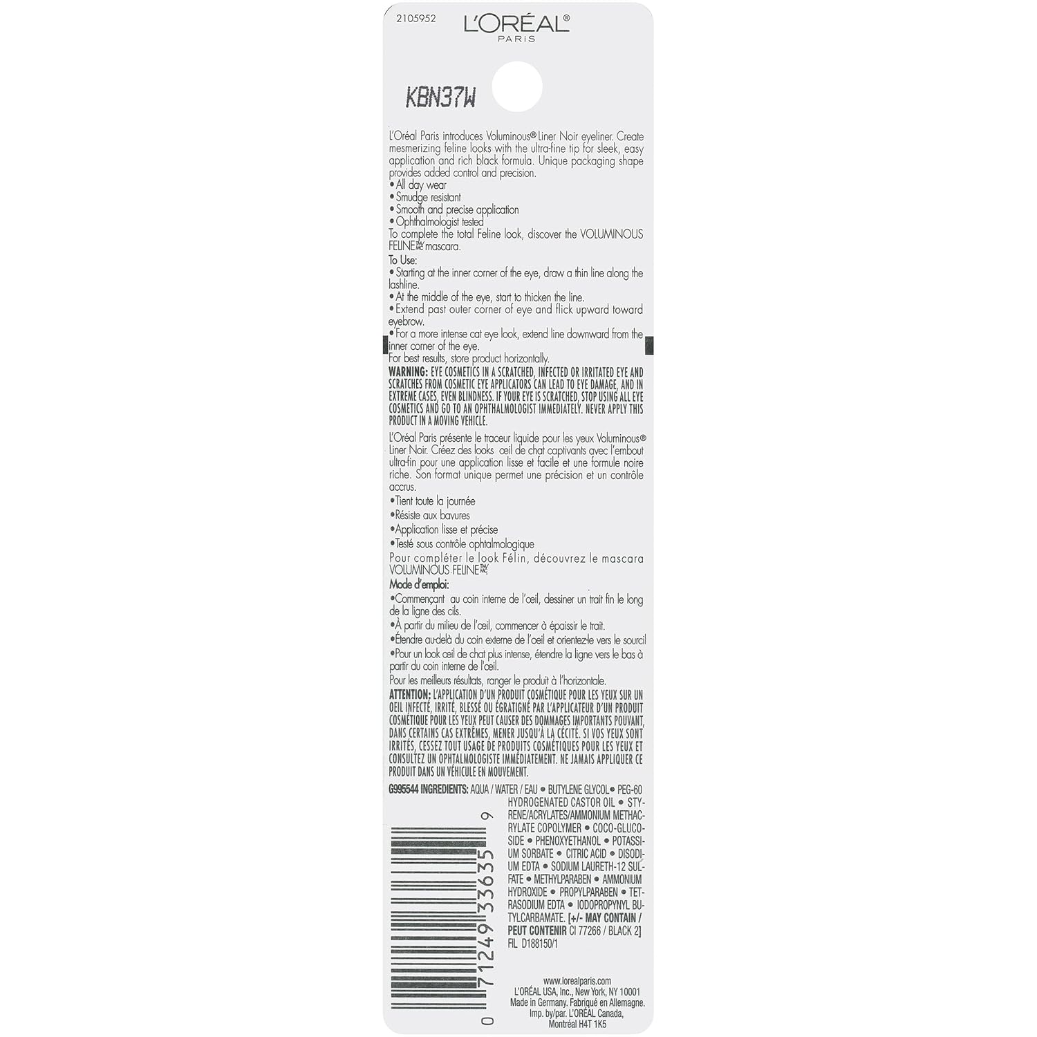 L’Oral Paris presents Voluminous Liner Noir in a wealthy, black system. Creates mesmerizing feline appears with the ultra-fine felt tip eyeliner for glossy and straightforward software. This winged eyeliner’s distinctive packaging form supplies added management and precision. To finish the overall Feline look, uncover the Voluminous Feline Noir Mascara. • Extremely- high-quality tip eyeliner • Wealthy black eyeliner • Creates A Mesmerizing Cat Eye • Liquid winged eyeliner To Use: Beginning on the interior nook of the attention, draw a skinny line alongside the lashline. On the center of the attention, begin to thicken the road. Lengthen previous outer nook of eye and flick upward towards eyebrow. For a extra intense cat eye look, prolong line downward from the interior nook of the attention. Warning: Eye cosmetics in a scratched, contaminated or irritated eye and scratches from beauty eye applicators can result in eye injury, and in excessive circumstances, even blindness. In case your eye is scratched, cease utilizing all eye cosmetics and go to an ophthalmologist instantly. By no means apply this product in a transferring automobile.