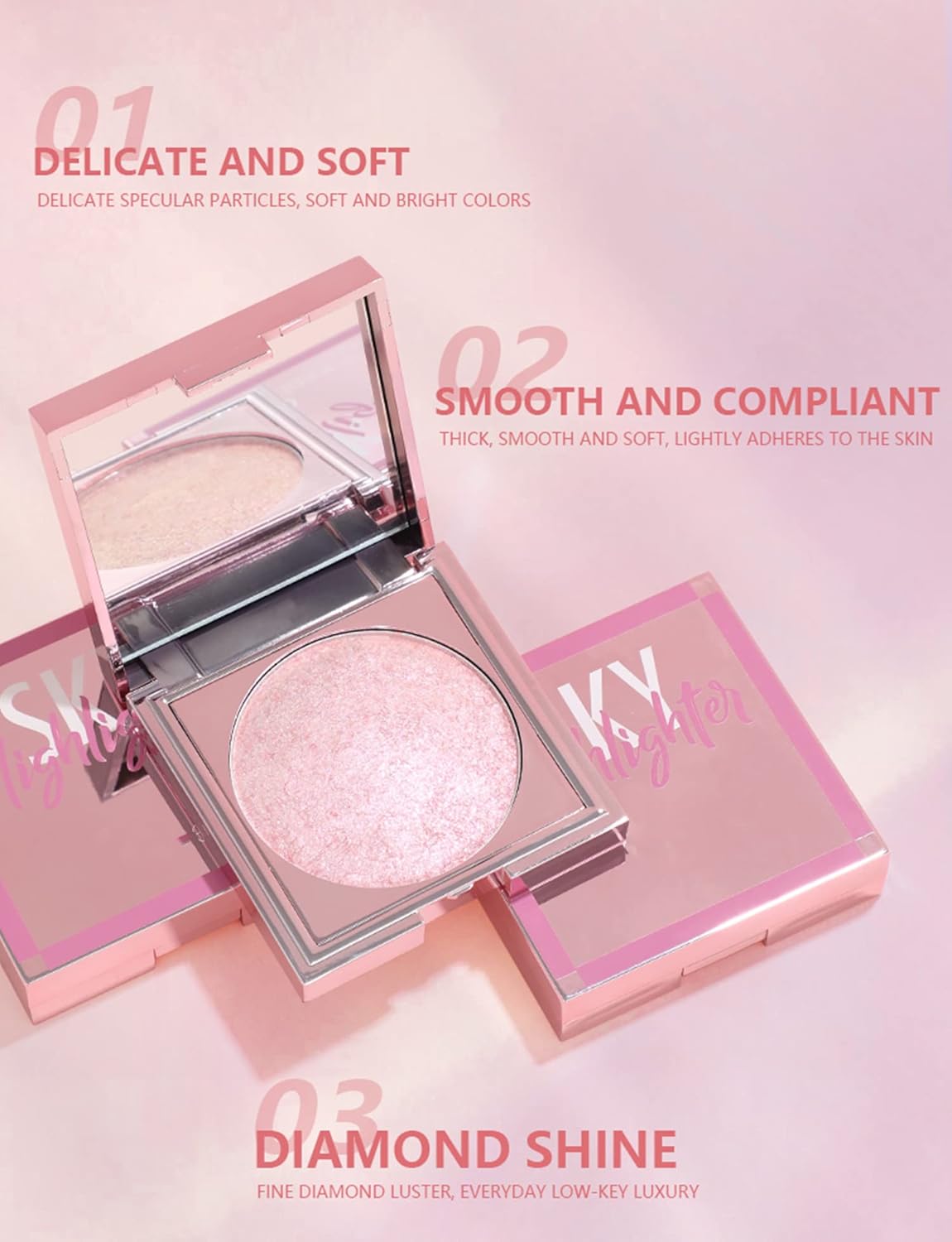 【Shimmer Highlighter Palette】The highlighter palette create an ideal gloss, The highlighter with nice shimmering impact, it may well make you extra charming, can instantly lighten the pores and skin, create a three-dimensional look.