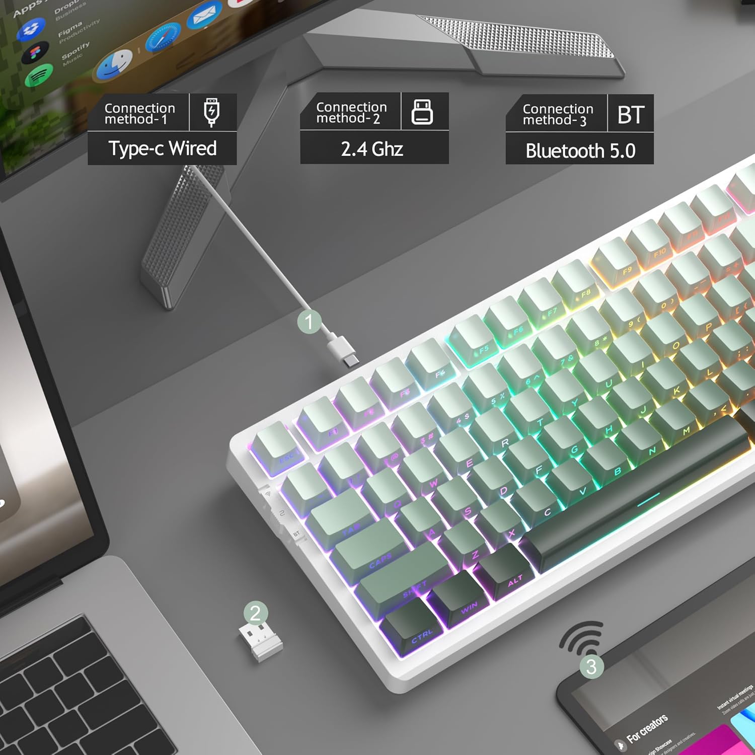 [8000mAh LARGE BATTERY and PBT KEYCAPS]: The 96% structure mechanical keyboard saves extra desktop house whereas retaining operate keys and arrow keys for video games and work. all 99 keys 100% anti-ghosting, distinctive facet printed sturdy PBT keycaps, additionally outfitted with a 8000mAh large-capacity battery, help win/mac twin system.